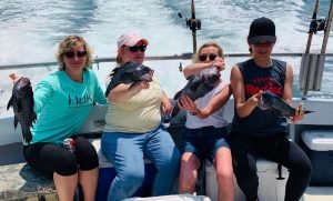 Gianna Carmona, Cassie Cool, Beth Gavin, & Jean Hoffman were at the rail doing serious damage to local sea bass stocks.