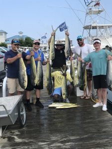 The mahi bite is picking up well as the offshore water temps warm up. Captain Chris Watkowski and mate Ayrton “The Kayak Crouton” Pryor of Spring Mix II put their anglers on a nice catch of mahi in the Washington Canyon today.