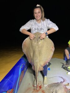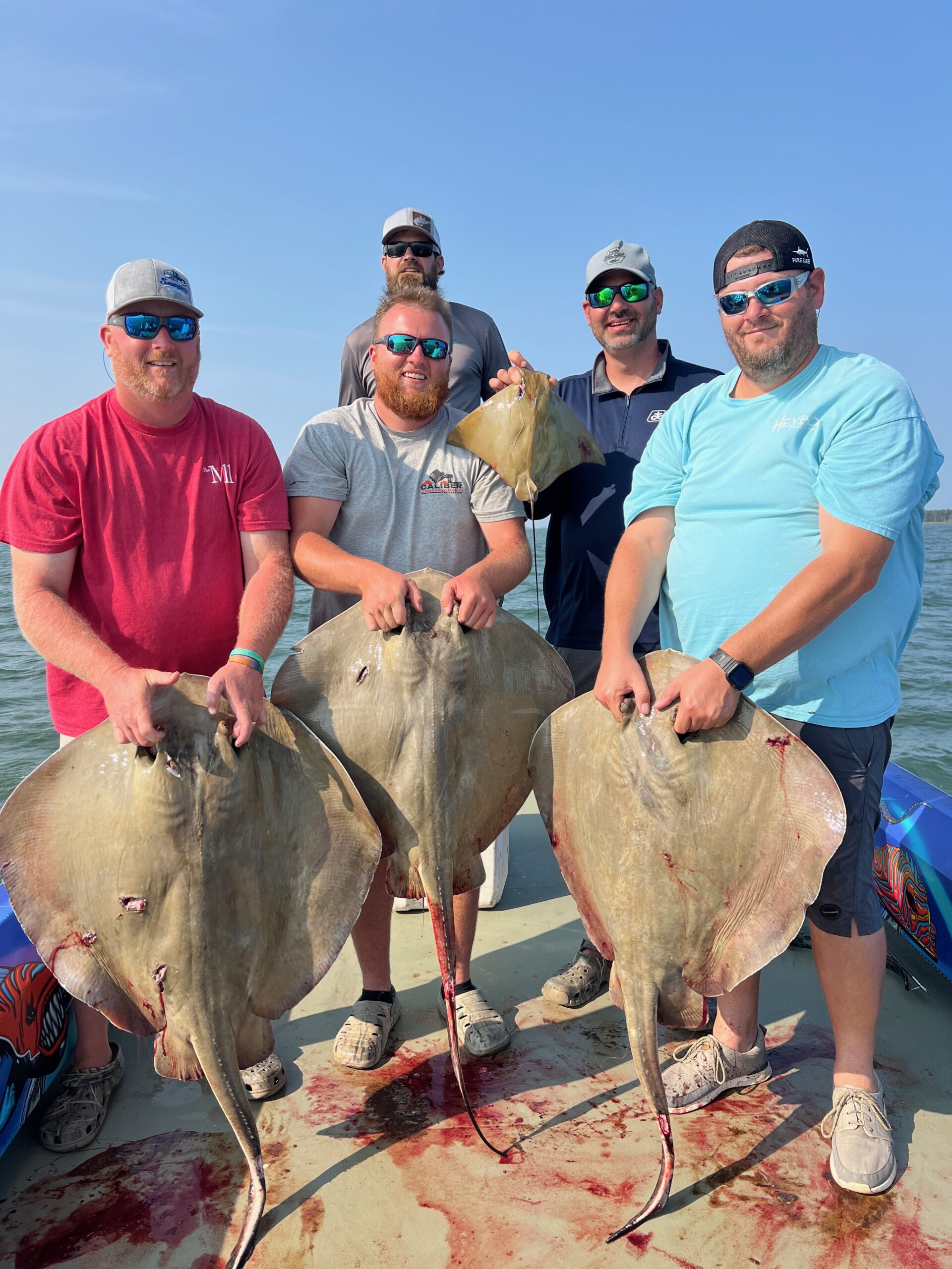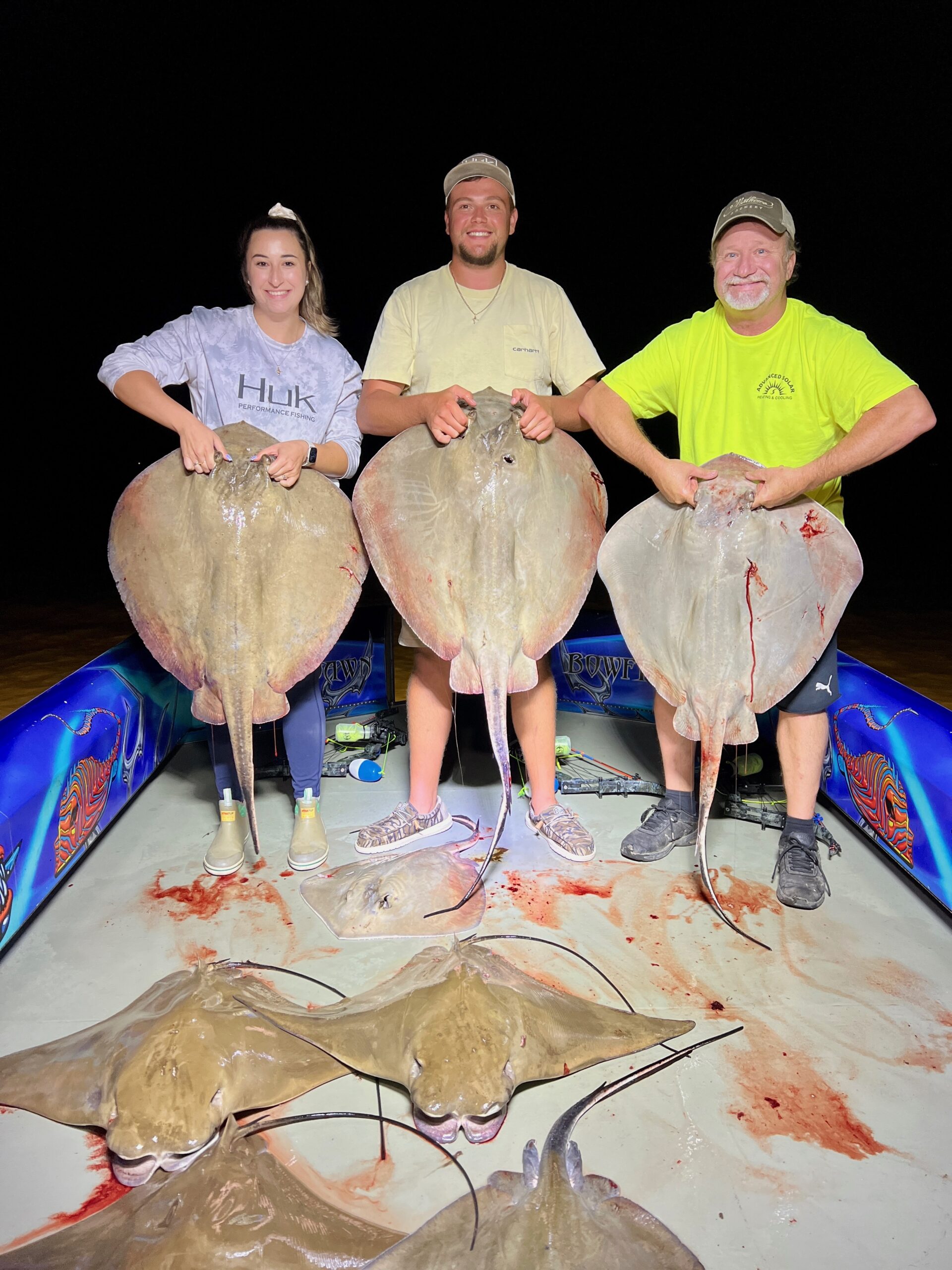 Captain Marc Spagnola of Dusk to Dawn Bowfishing is showing his shooters a good time both day and night with cow nosed and southern rays with some houndfish in the mix.