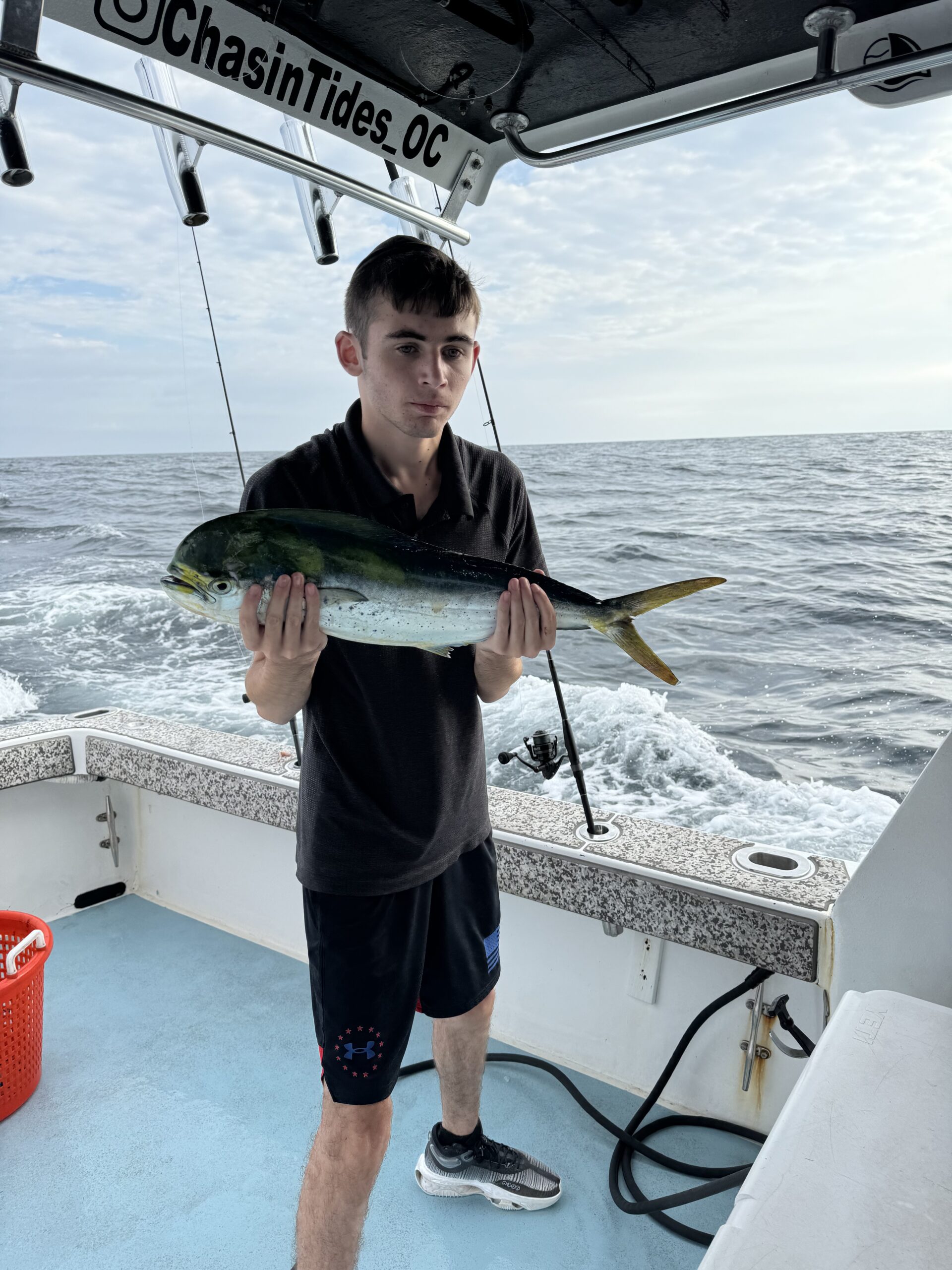 Anglers fishing on board Chasin’ Tides Charters have been seeing some good fishing in the ocean with some mahi, while in the back bays it’s good striper action in the OC Inlet.