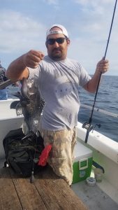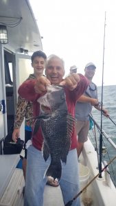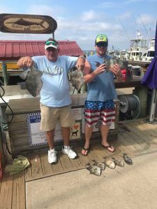 Ocean bottom fishing was a little rough this morning….literally, but things calmed down this afternoon and some nice bottom fish ended up in coolers. Captain Chris Mizurak of the Angler reported a slower bite than yesterday, but quality fish up to 4.5 pounds.