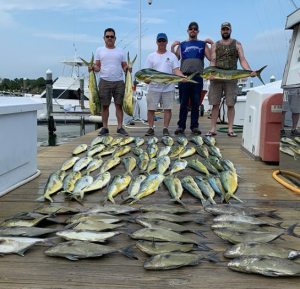 Captain Joe Drosey and the crew of Rhonda’s Osprey trolled the canyons for a good day of fishing that included a white marlin release and a bunch of mahi.