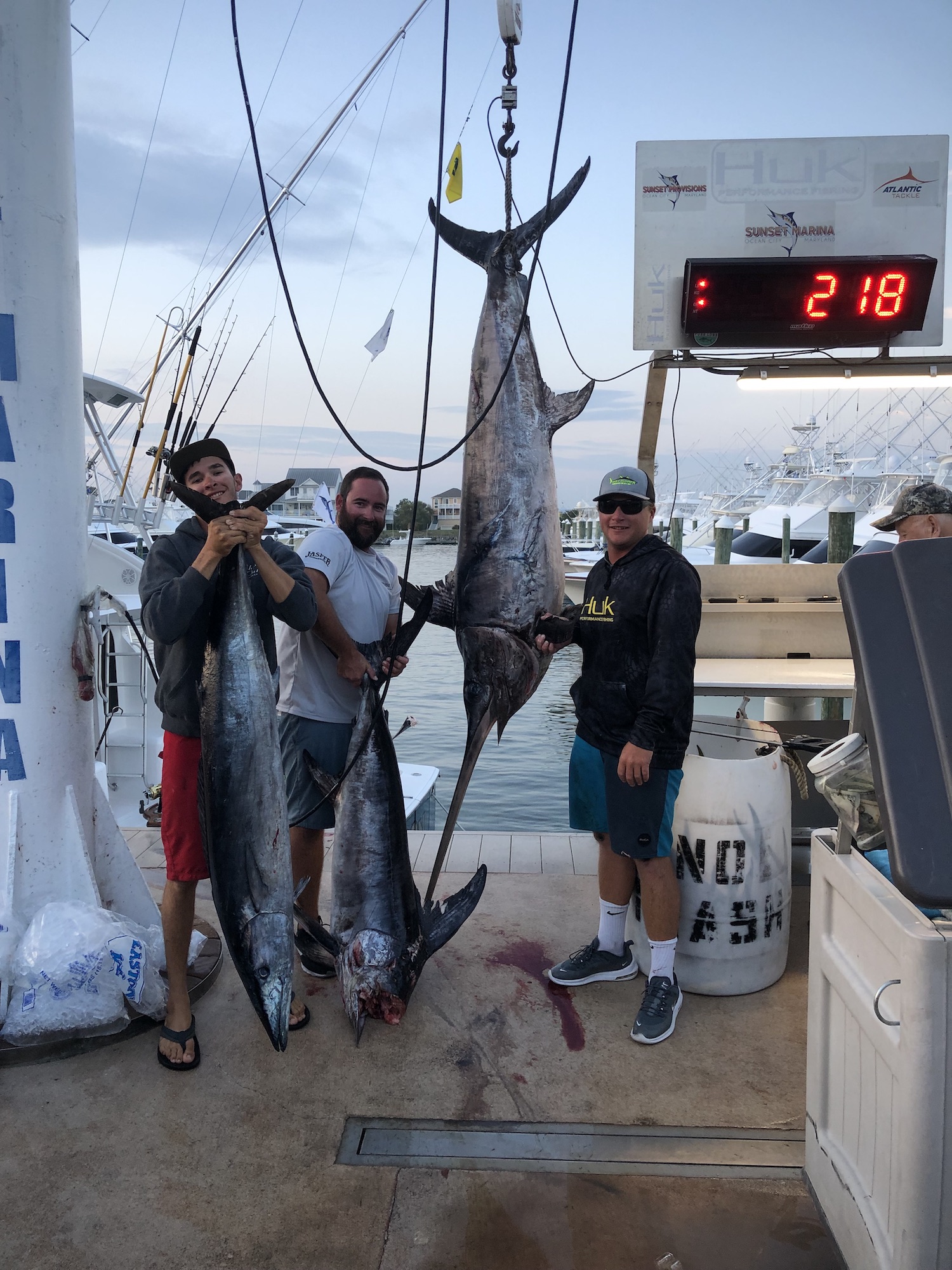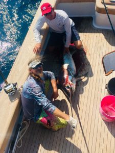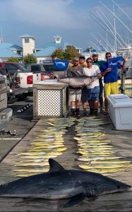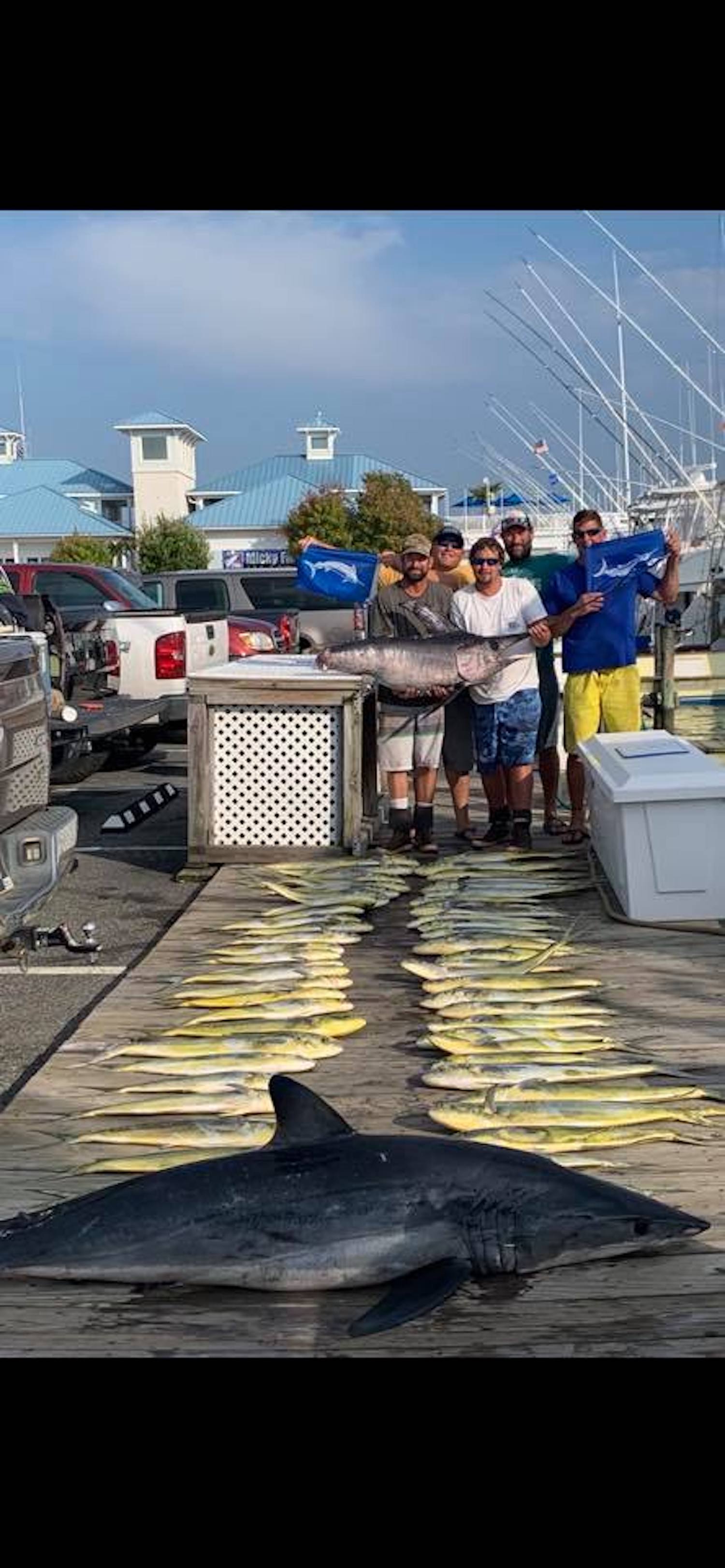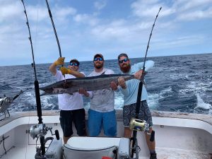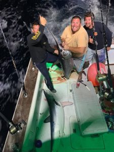 Captain Mike Burt and the crew of Pumpin’ Hard did some daytime swordfishing today and boxed one fish that made it to the boat and added a few mahi.