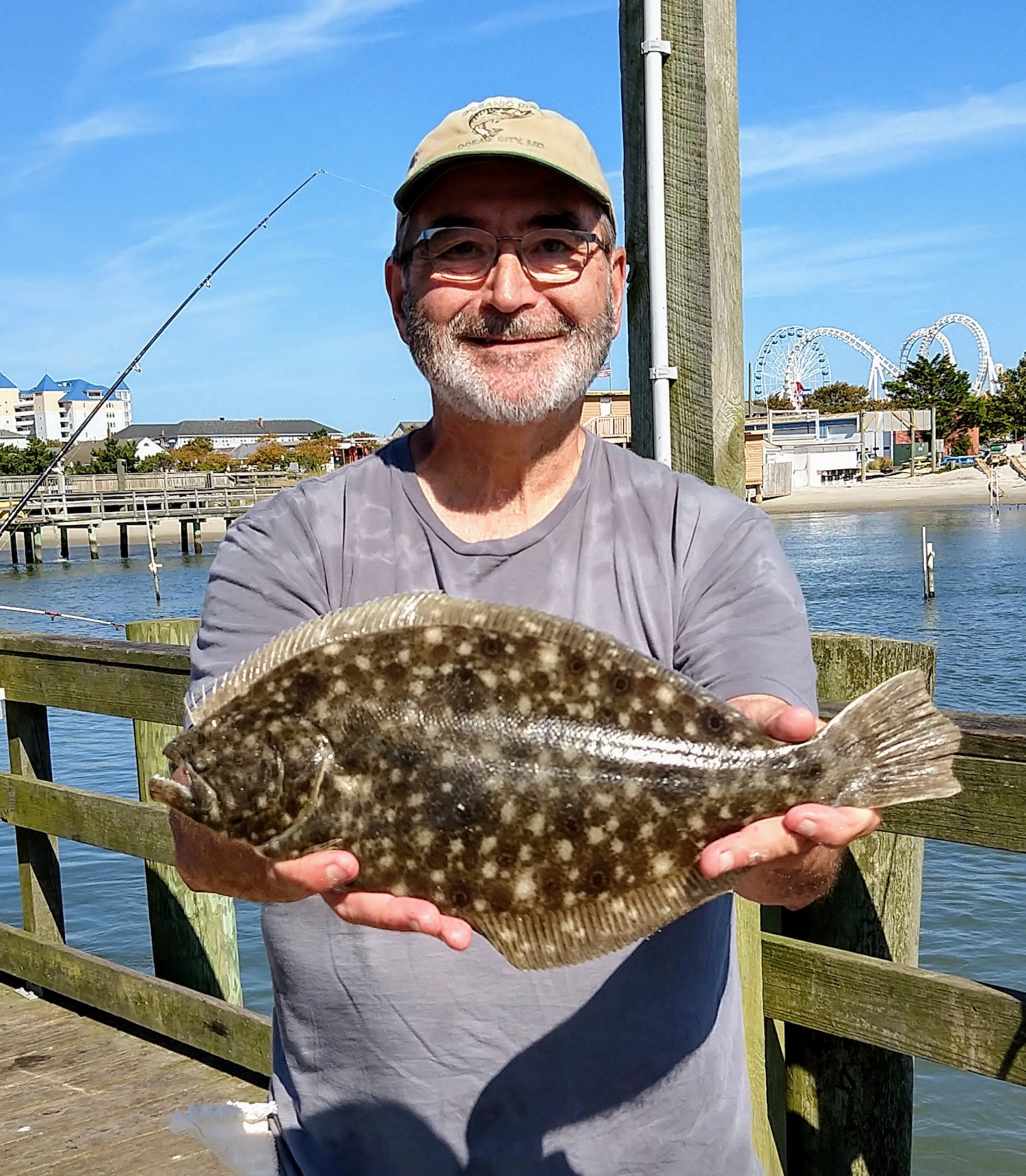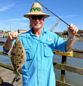 Bob Haltmeier sent me a couple of photos from action down at the Oceanic Pier where he and some others found some keeper sized flounder.