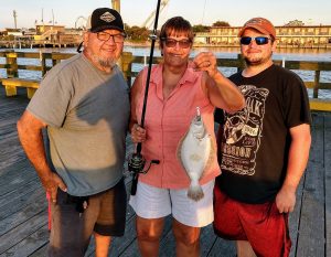 Janet Boyer was fishing with Mark Anthony when she caught one of the smallest flounder that I’ve ever seen on hook and line. This pee wee ate a bloodworm intended for a blowfish.