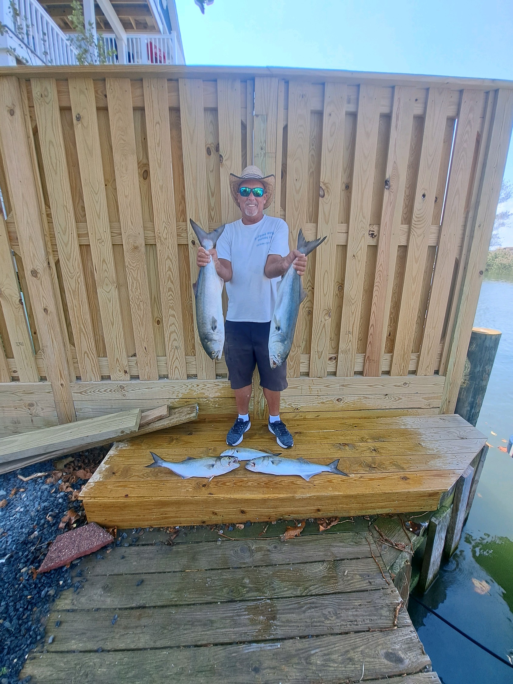 Captain Wayne Blanks of Bayside Guide Service is killing it at the route 50 bridge lately and today was no different. This morning it was five nice bluefish and this afternoon it was rockfish, double “chopper” blues on the same rig and two at a time keeper flounder.
