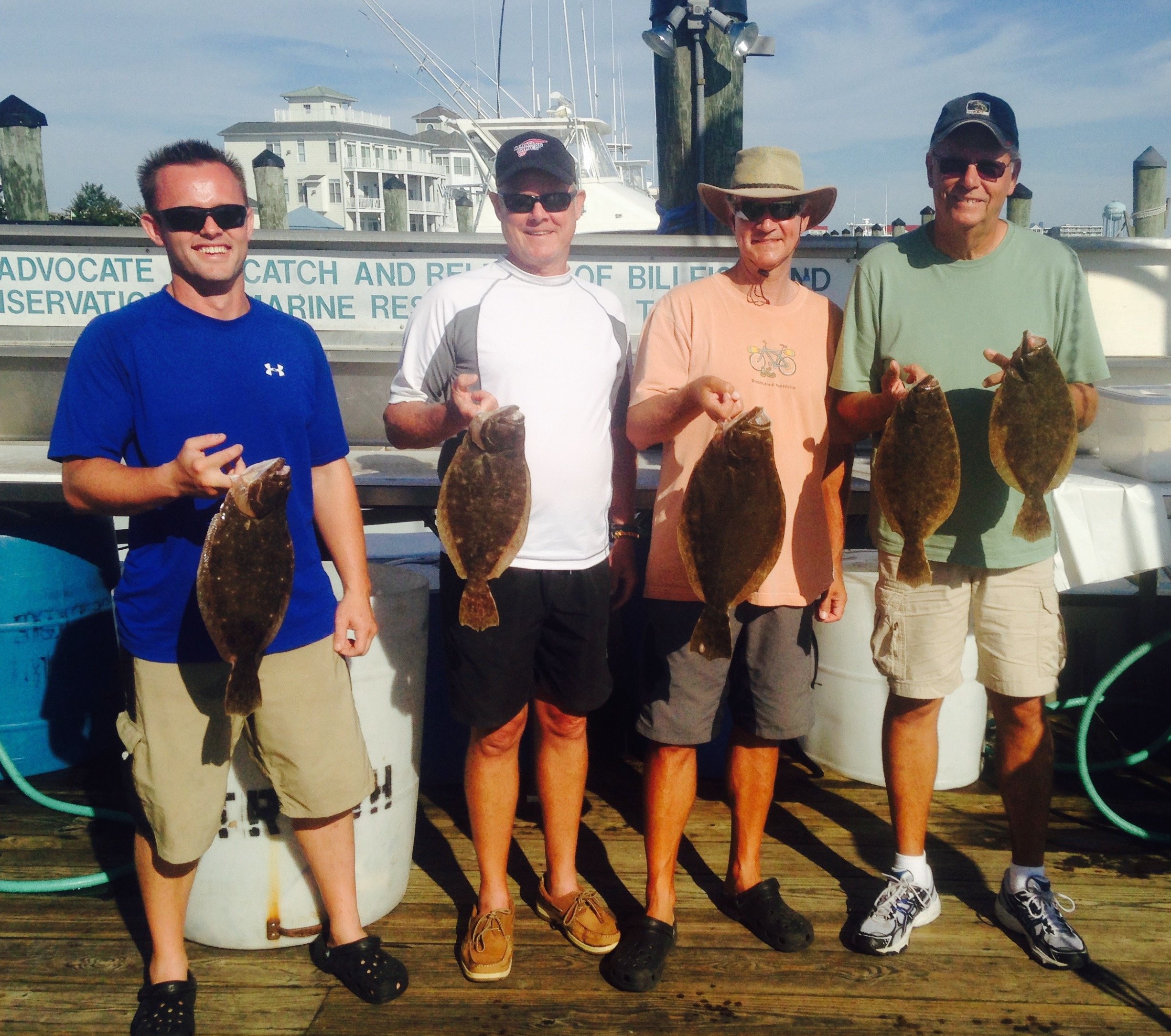 I got a great report from Captain Monty Hawkins saying that the Morning Star was back to the dock two hours early today with a boat limit of flounder. He also had Bud Bricker of York, PA with a magnificent double header. One drop for Bud lead to this double header….one fish was 4 pounds, and the other was 5.5 pounds! That’s pretty rare and pretty sweet!