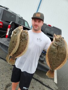 Jacob Fitzimmons of Riviera, MD fished with Mike G today and landed three keeper flounder up to 20.5″ on live bunker.