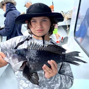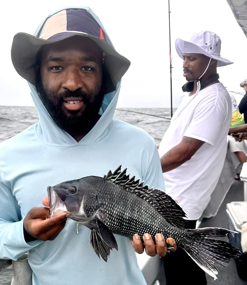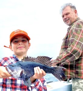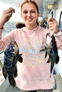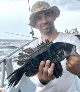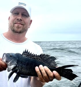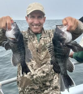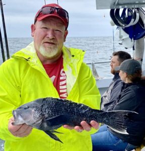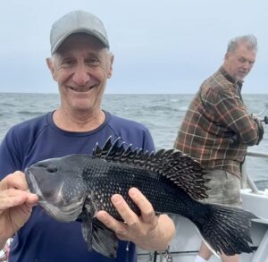 Captain Monty Hawkins of the Morning Star reported the weatherman got him today, but he still got the sea bass.