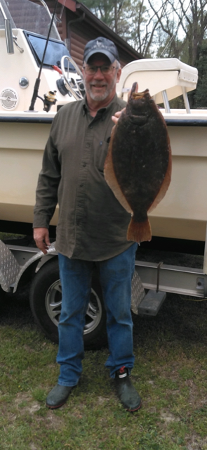 Monte Whaley used our Fish in OC chartreuse glow Squidly to land a real nice 22″ flounder.