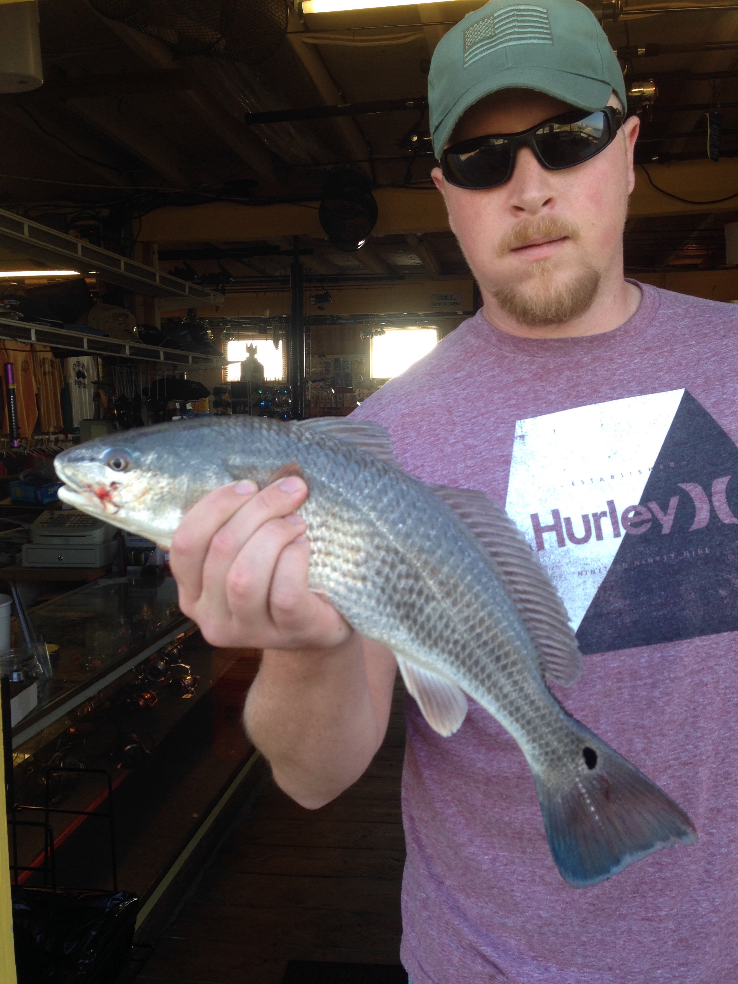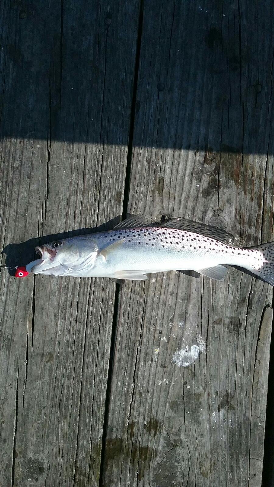 Bear at the Oceanic Pier submitted a couple of photos and a report of some good fishing down at the pier today. Anglers were out enjoying the beautiful conditions and having luck with puppy drum, bluefish, tautog and some speckled trout. Marine Tom caught himself a nice puppy drum and a nice speckled trout on a jig head and Gulp combo from the pier this morning.