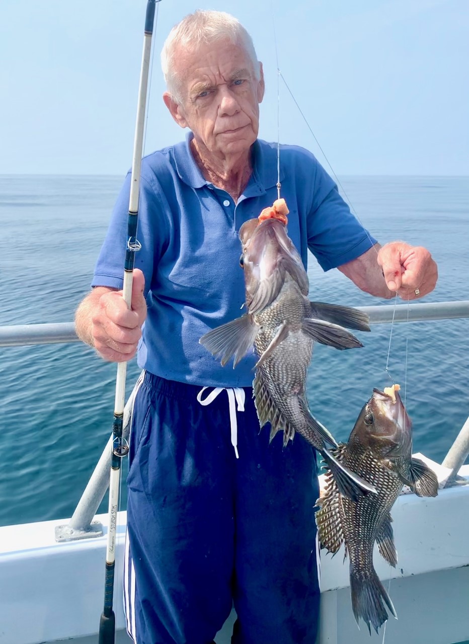 Though all were welcome to try for fluke/flounder, today’s action was in sea bass.