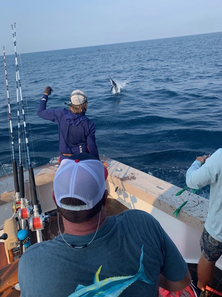 Just down the dock from us at Sunset Marina Captain Mike Burt and his crew on the Pumpin’ Hard went four white marlin releases out of five bites for a great day on the troll.