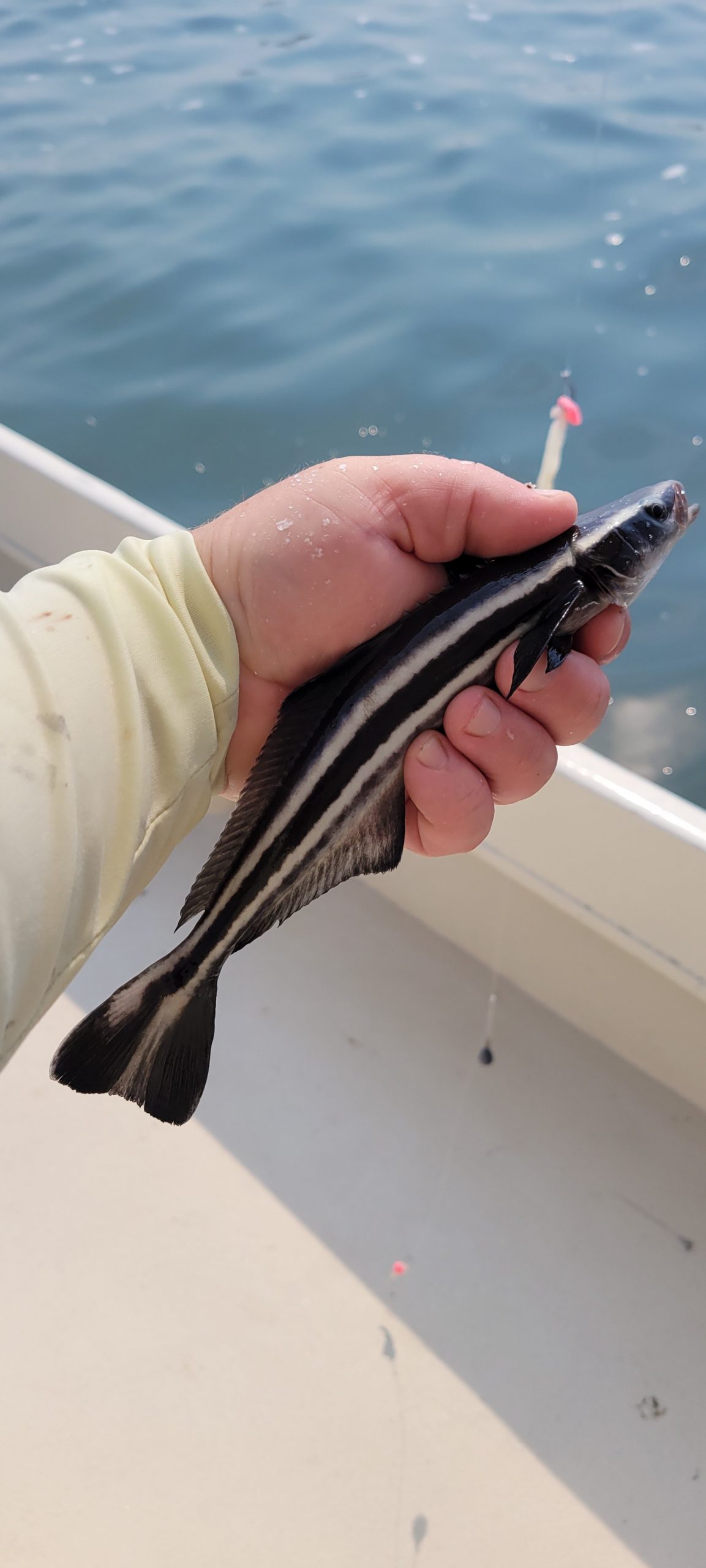 Captain Jason Mumford of Lucky Break put his anglers on some Spanish Mackerel and croaker today. Captain Jason also had the rare catch of a juvenile cobia that ate a Fishbites.