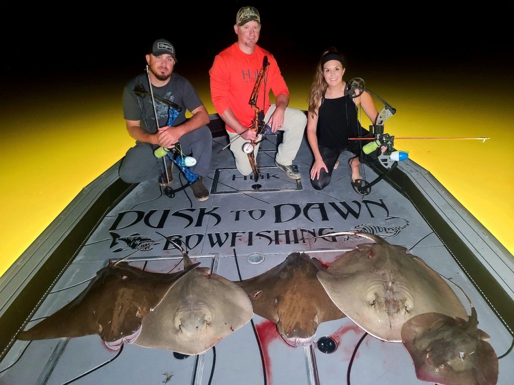 Shooters fishing on board Dusk to Dawn Bowfishing have been hitting their mark on both southern and cow nosed rays both day and night.