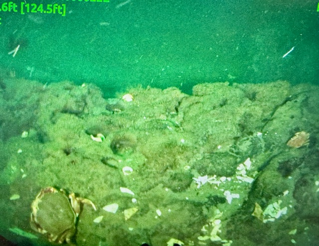 We did find interesting soft substrates similar to what the Bass Grounds was once comprised of, but no tubeworms. Very few fish were using the substrate. (Soft marsh peat of long ago will have numerous holes dug by I couldn’t guess what and used today by conger eels and white crab. Rock is rock – no holes dug in it. With both substrates it’s the hollowed out shelves beneath peat or rock that fish and lobster like best..)
