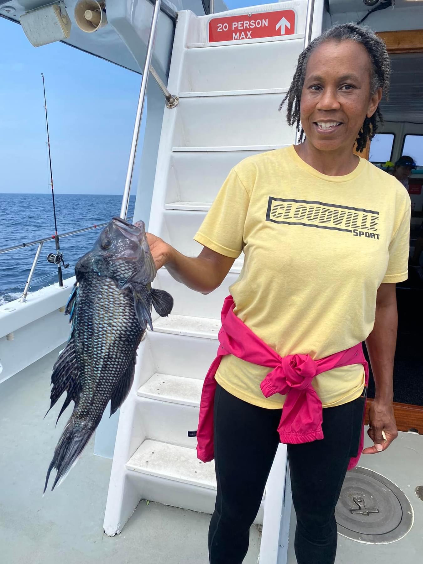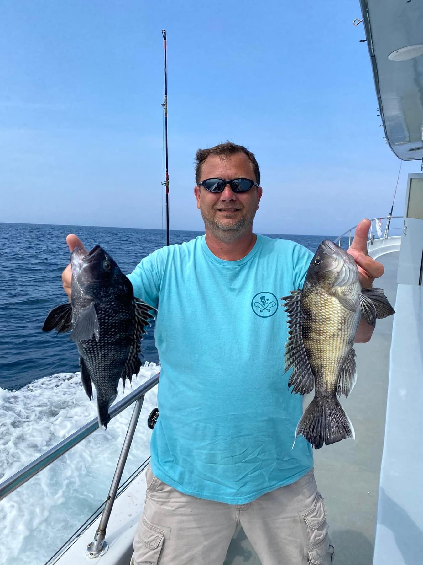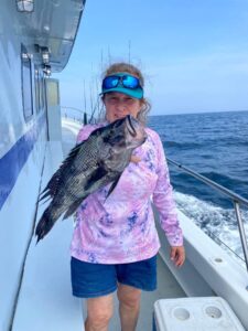 Captain Chris Mizurak of the Angler reported a slow start to fishing today, but by the end of the day, they had a very nice catch of Seabass.