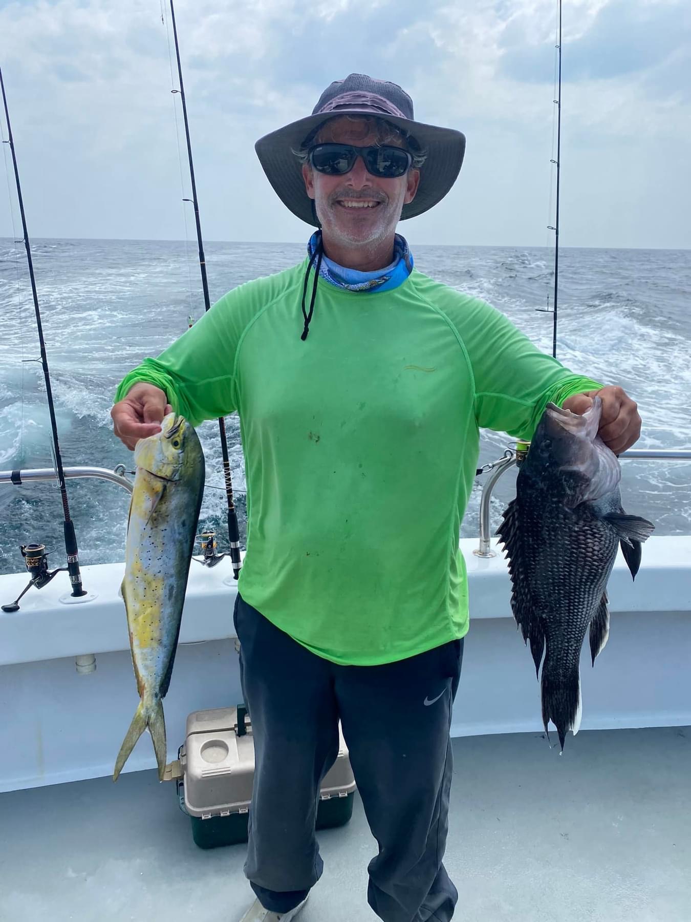 Fishing a super light rail for mahi has been mostly fun. Had one recent day (Monday!) that was a real clunker. Otherwise, when mahi bit? Fine. If not? Sea bass would save the day.