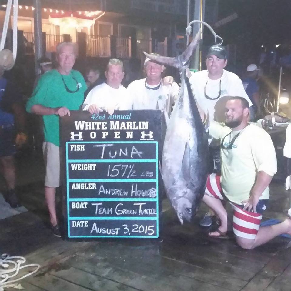 2nd Place in the tuna category belongs to Andrew Howard who was fishing on the Team Greene Turtle and was the last fish to be weighed this evening at 157.5 pounds.