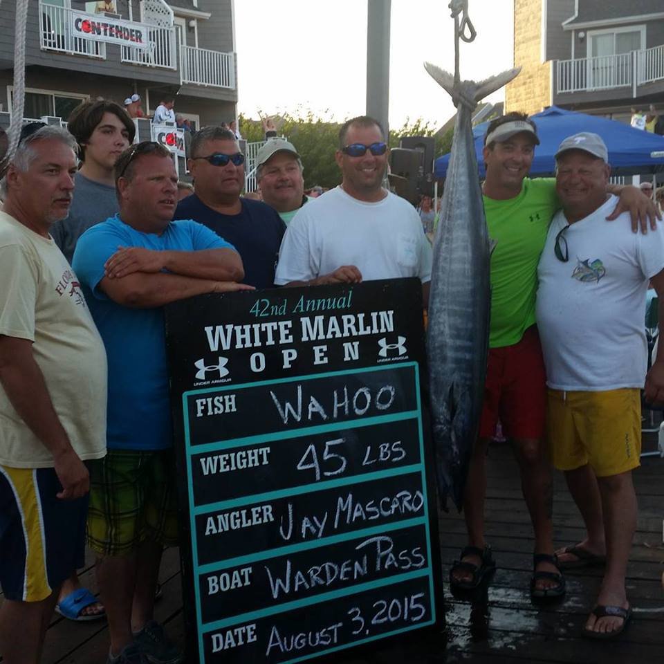 There is only one qualifying wahoo in the wahoo category and that fish was caught by Jay Mascaro while fishing on board the Warden Pass.