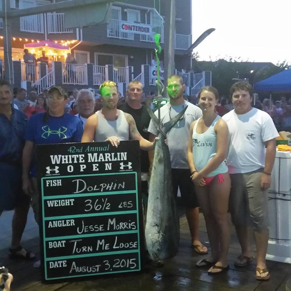 1st Place in the dolphin category is the Turn Me Loose and angler Jesse Morris with a nice 36.5 pound mahi.