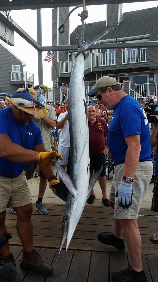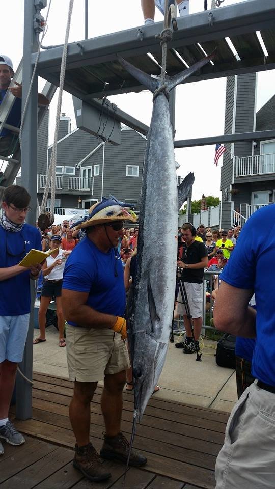 There may be one boat fishing this week’s White Marlin Open that will be more anxious tomorrow than the Backlash, which currently has the first place white marlin. Due to the fact that the Backlash did not enter the $10,000 added entry level this week, the anglers fishing on board the Goin In Deep, who currently have the largest blue marlin of the tournament, are looking at quite a paycheck. If no boat entered into the $10,000 added entry level catches a qualifying white marlin tomorrow the monies from that entry will be moved into the blue marlin category. If that scenario pans out the Goin In Deep could cash a check for their blue marlin worth $1,633,900!!!