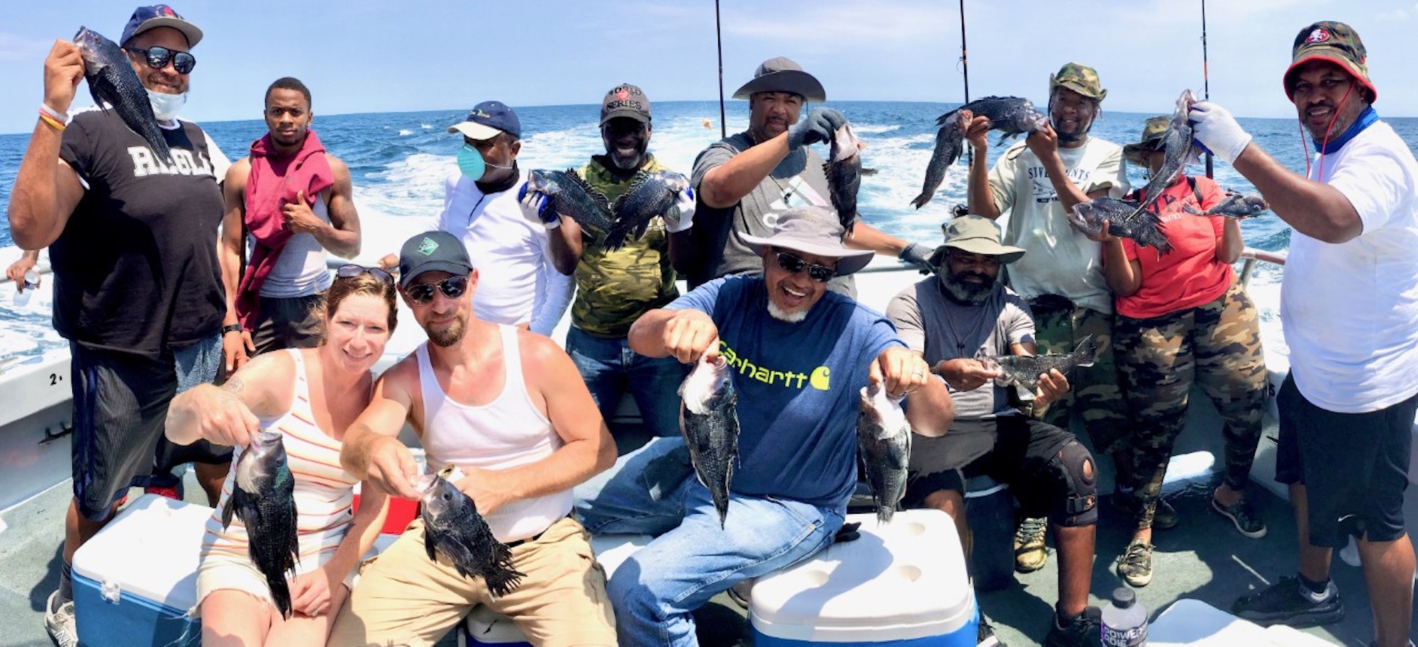 Anglers on the Angler with Captain Chris Mizurak had a good day of fishing with some nice sea bass coming over the rail.