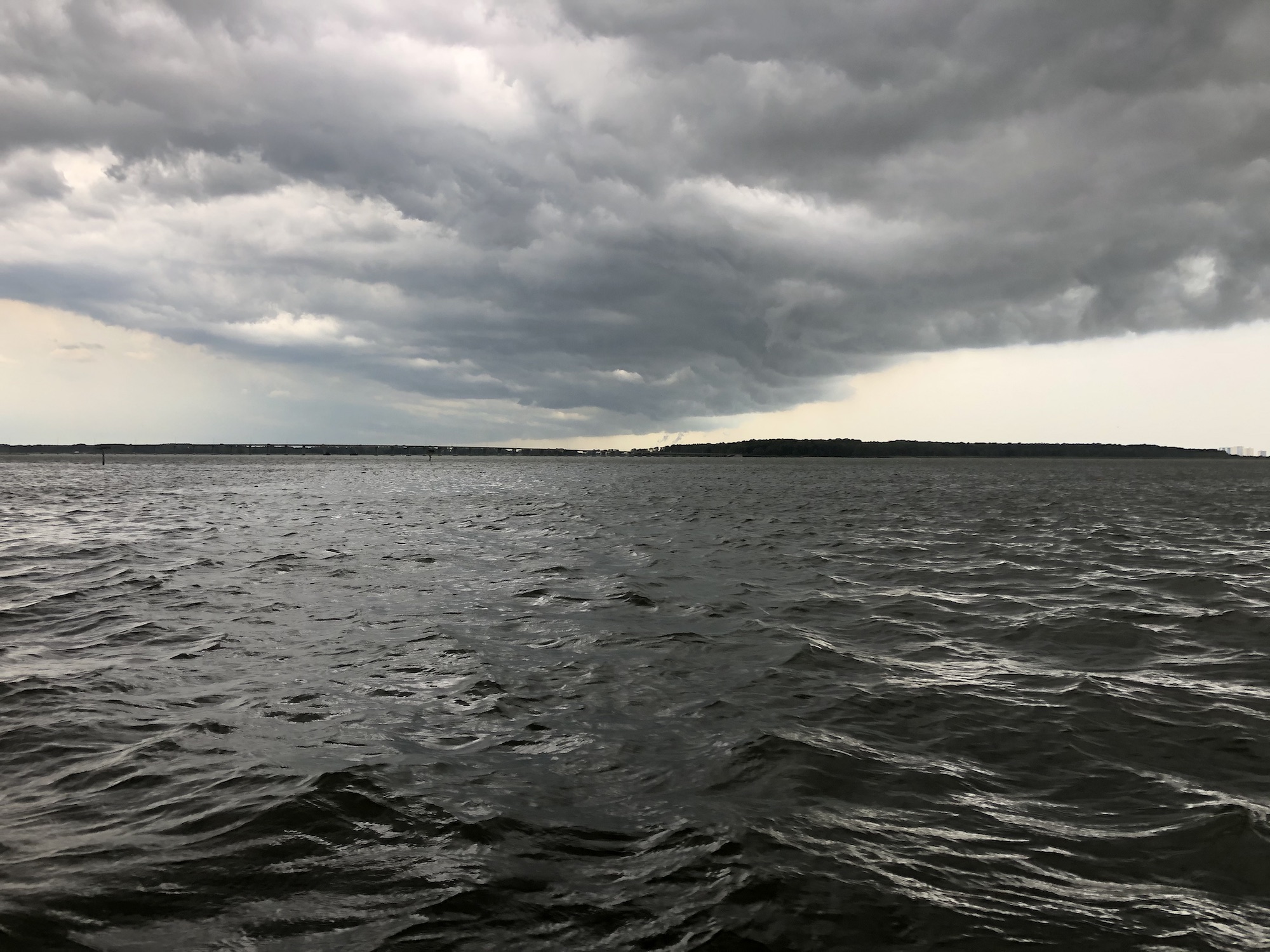 It was hot and humid again today and that fired up some thunderstorm activity this afternoon. They didn’t look terrible, but there was some crazy cloud activity going on and there was some rain, a little wind and some thunder and lightning. Most boats were back to the dock already and the most fish were already filleted. My buddy Captain Wes Pollit got a cool shot of the clouds as the storms rolled in.