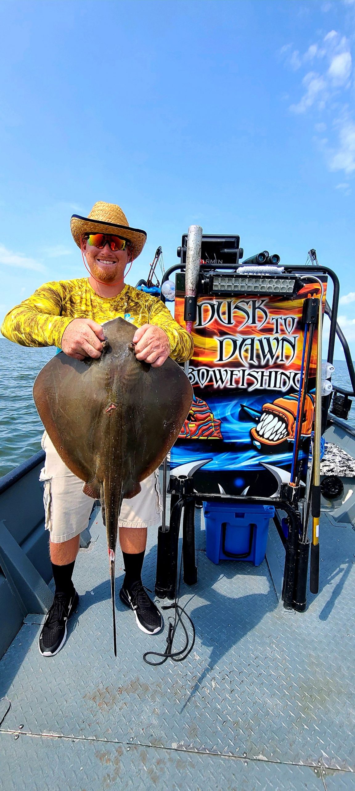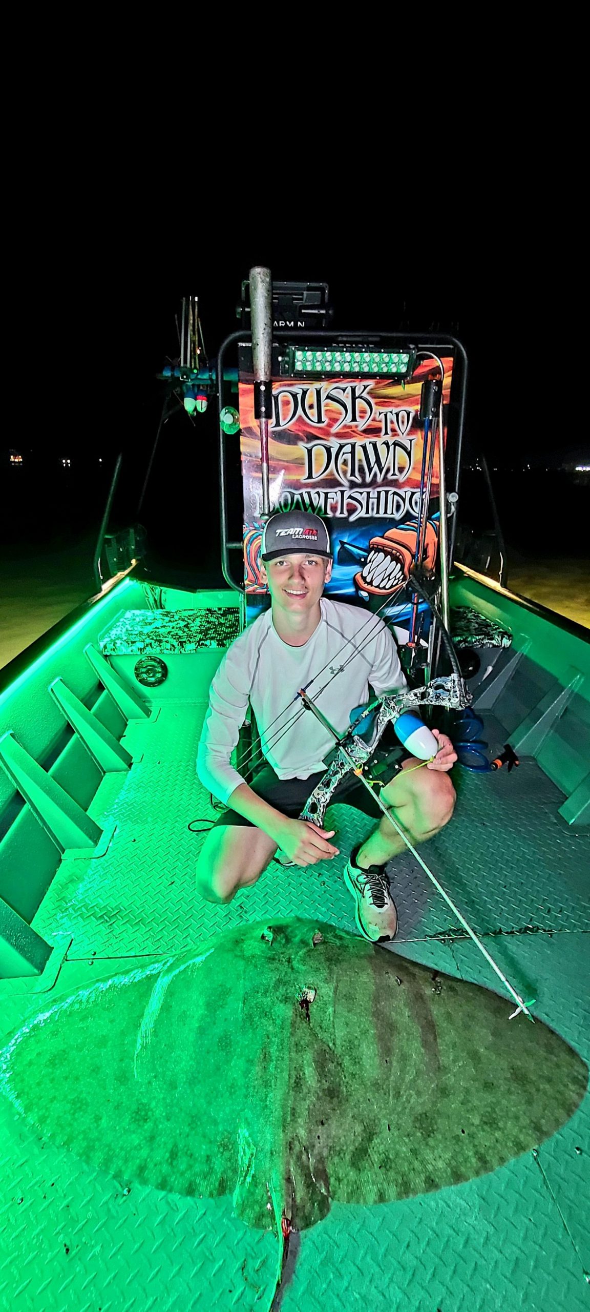 Captain Marc Spagnola of Dusk to Dawn Bowfishing is going night and day again and his shooters are seeing great action for houndfish and cow nosed, southern and butterfly rays.