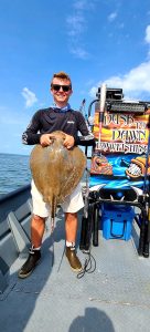 Caleb Powell caught this nice 20″ flounder on a white Gulp on the outgoing tide this afternoon.