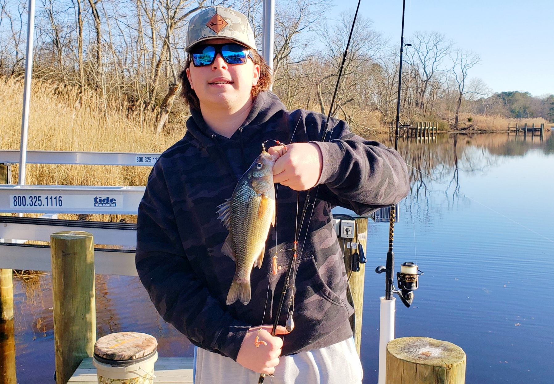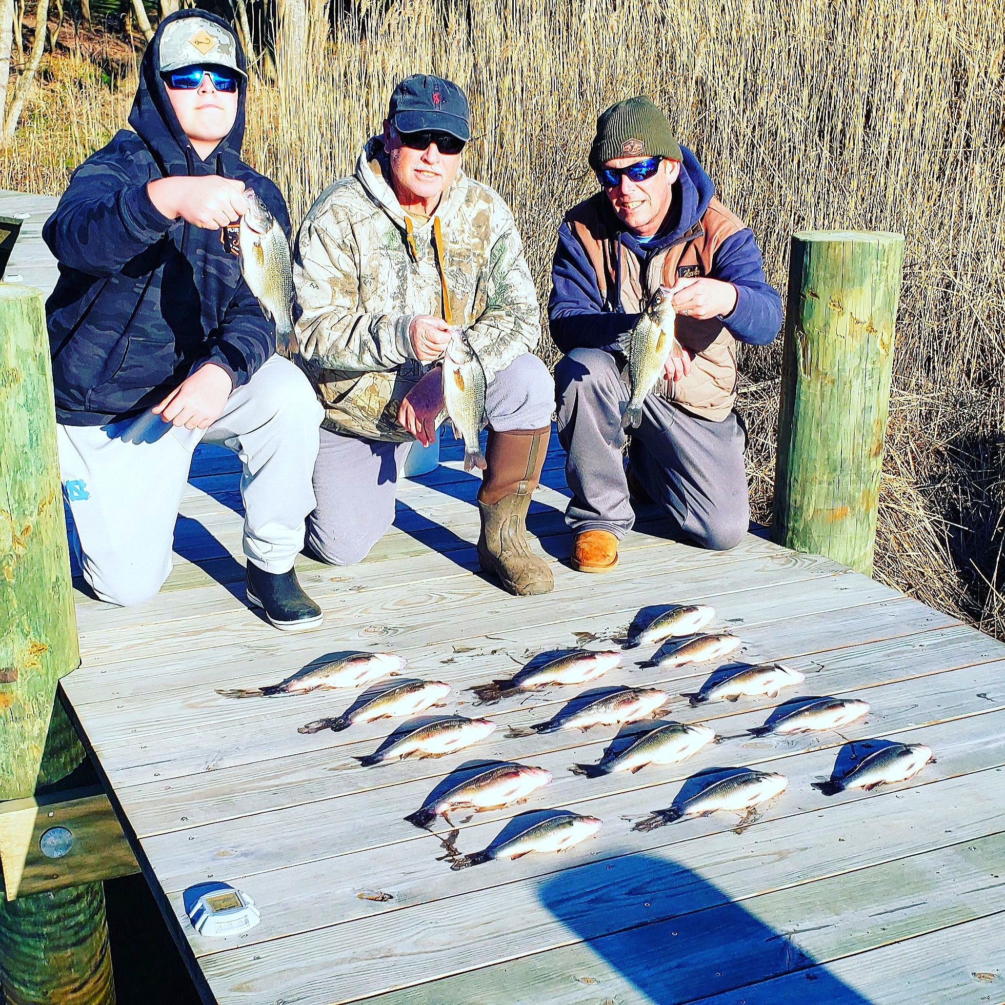 The West clan were back on the white perch today fishing from the dock behind their house. Owen, Wayne and Poppy Dill had a great time using bloodworms to catch 18 nice white perch on a nice, calm day with family.