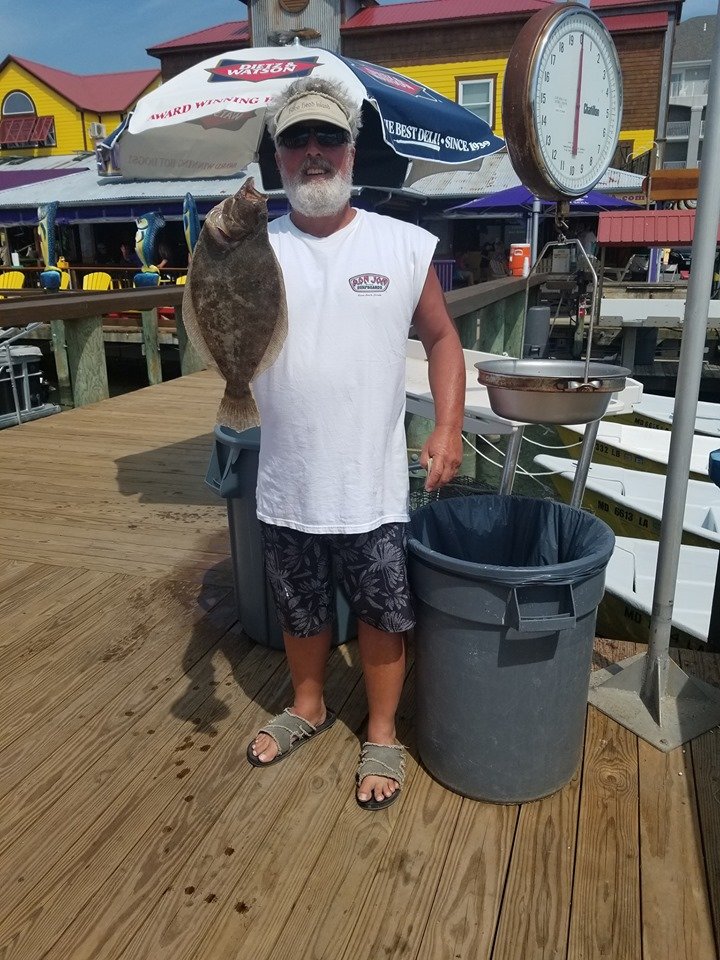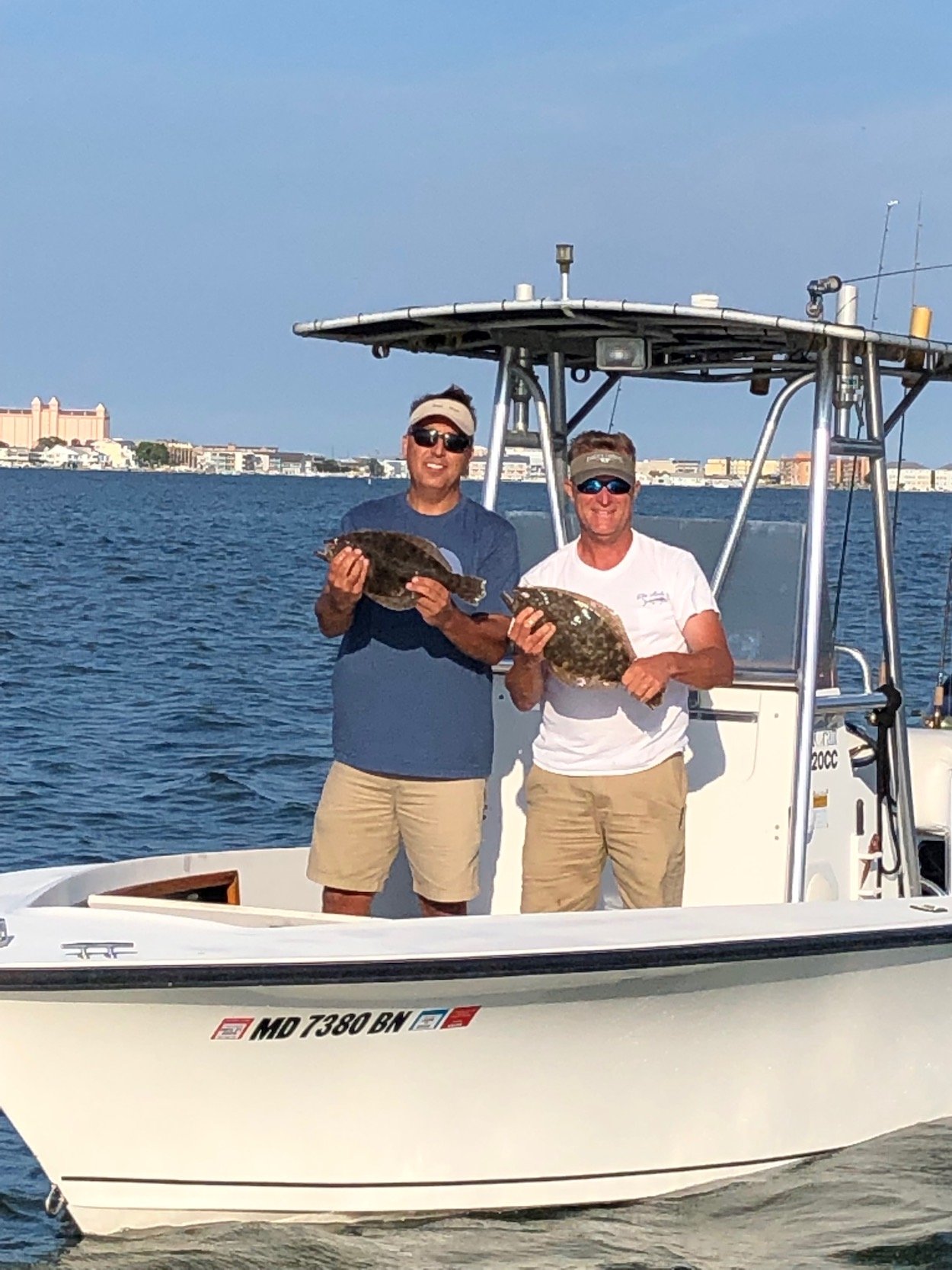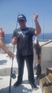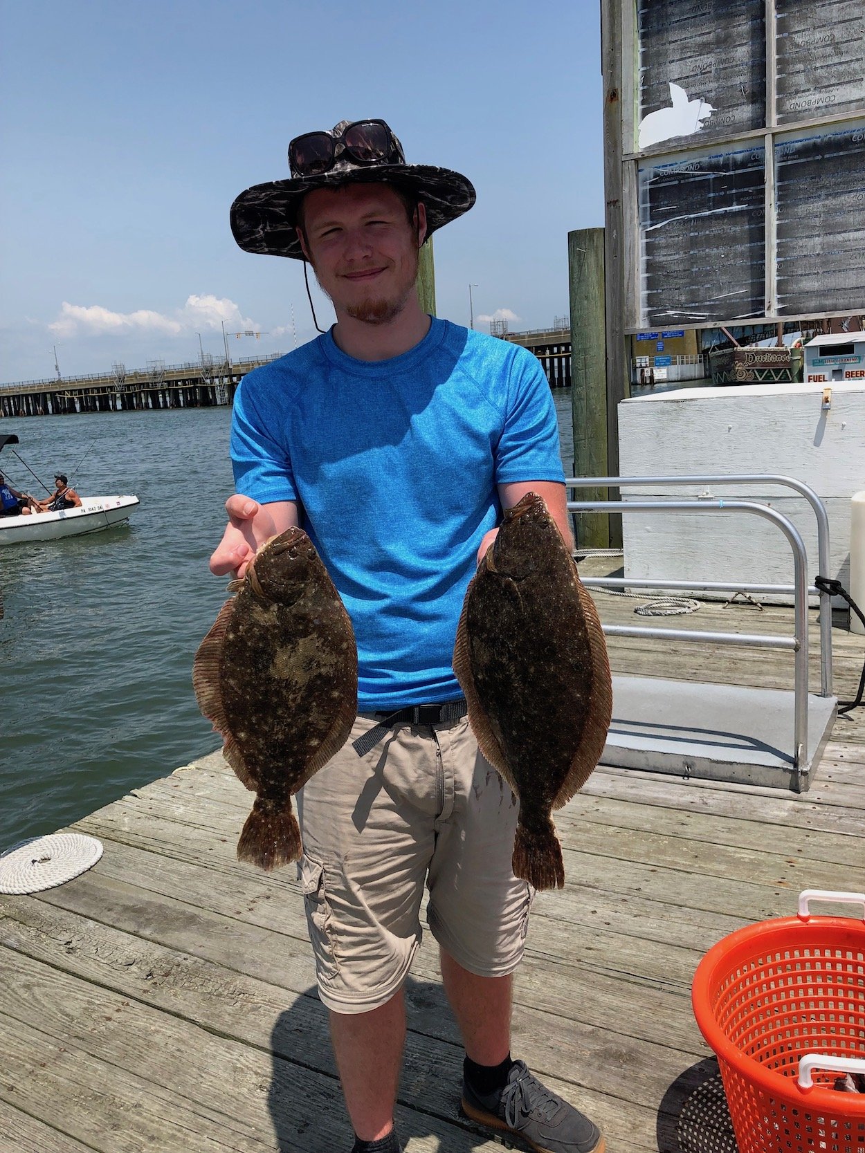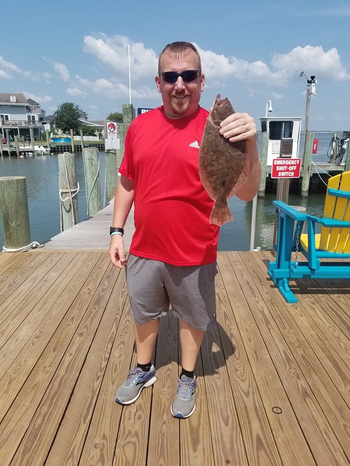Ended the day with a tied fish-pool. Dave Lambert of St. Marys MD had an 18.5 inch fluke, and Sean Murphy of Reading PA had a 17 inch sea bass to tie (by weight) for the pool money.