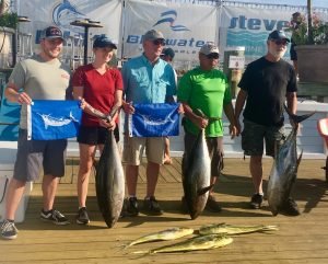 Captain Corey Kennington and the crew of Boss Hogg had a great day off in the canyons today as well releasing two white marlin and boxing three healthy yellowfin tuna and some mahi.
