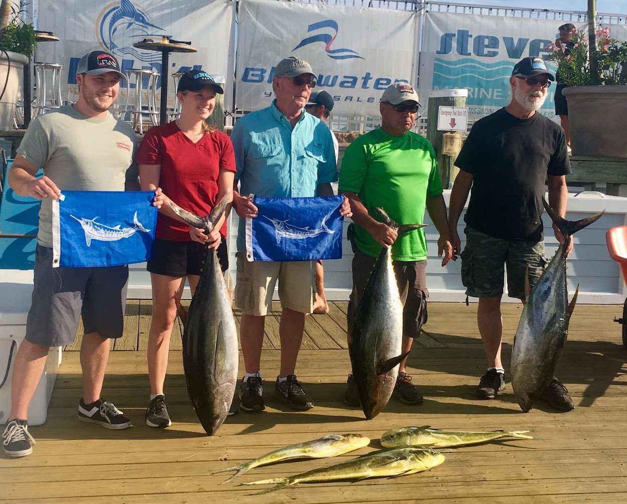 You ever notice how some fish have very colorful names?! White marlin, yellowfin tuna, golden tilefish, brown flounder……well, that last one was made up, but it could work. Today was a very colorful day for some of the offshore fleet and it was also absolutely beautiful. I got to fish the top of the tide this evening with the family where he had a bunch of throwback flounder and it was reely pleasant on the water. Tomorrow looks like more of the same so there are going to be some fish caught.