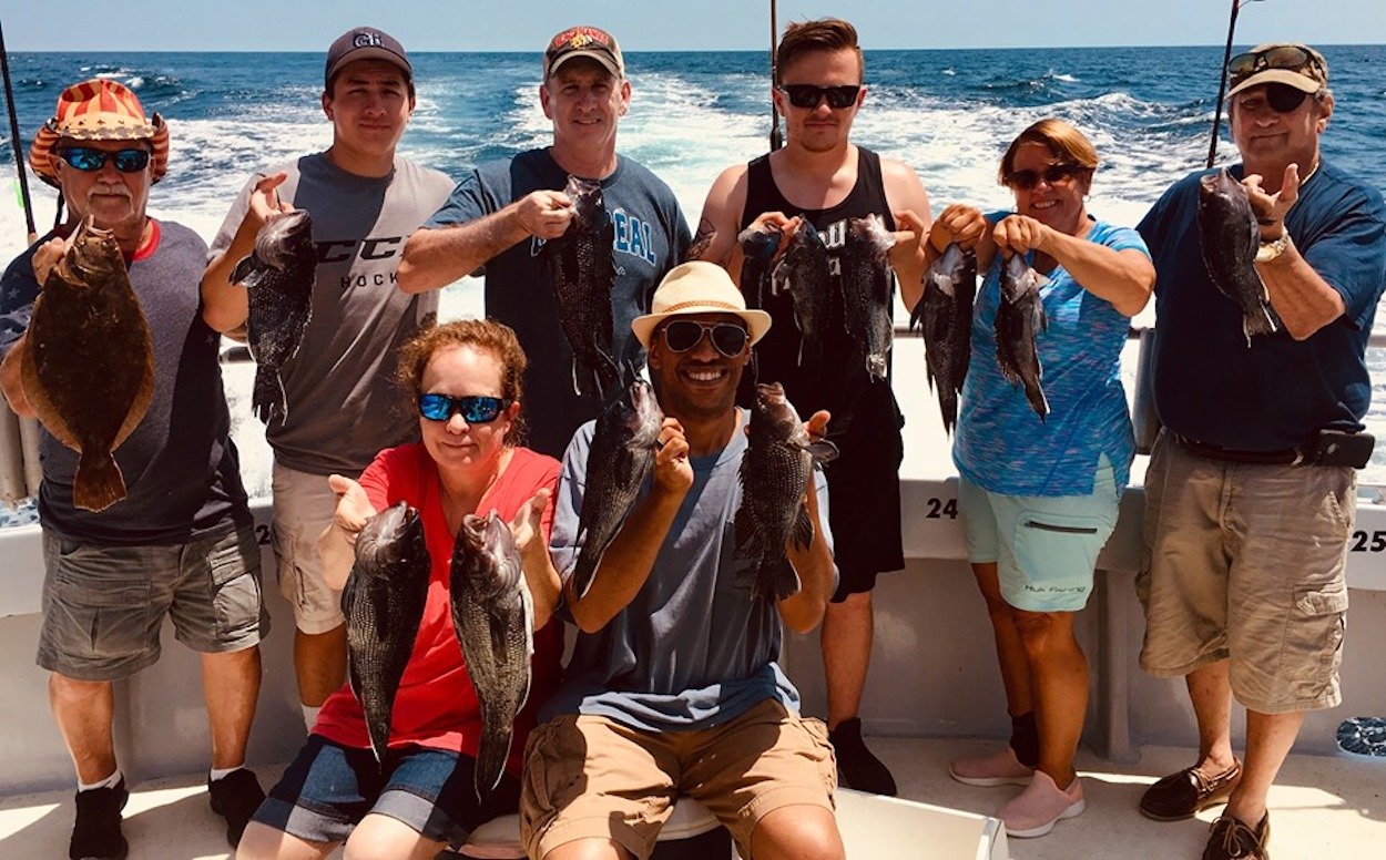Captain Chris Mizurak of the Angler reported some good fishing today as the sea bass decided to turn on for him. Captain Chris also had a couple of keeper flounder come over the rail.