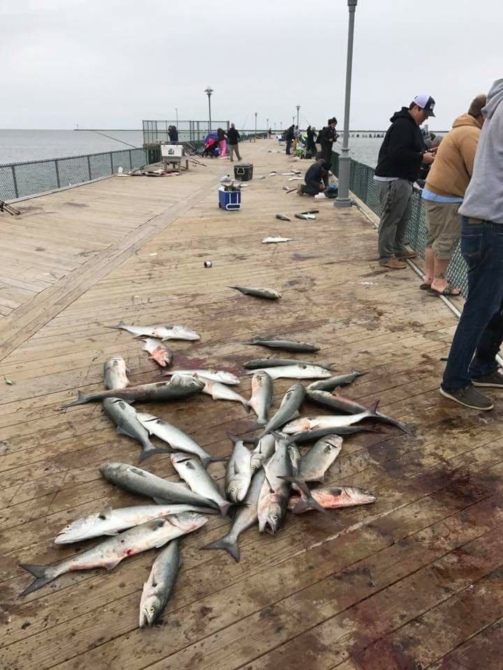 Paul Hazzard submitted this photo of the Cape Henlopen pier from yesterday saying that the “blues were at the pier all day, everywhere on anything.”