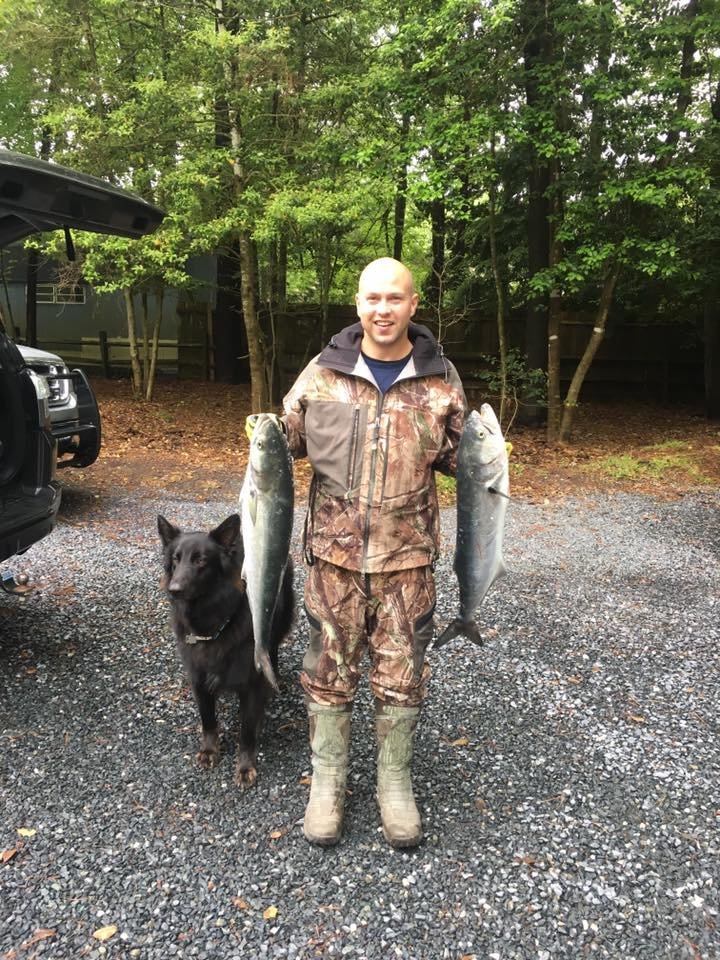 Shaun Lloyd fished the 3rd street bulkhead today where he landed these two big bluefish.