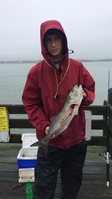 Jordan Helsel made the trip down to Ocean City today from Pennsylvania to see if the bluefish were biting on the Oceanic Pier and found out that they are when he caught several snapper sized fish.