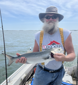 My main man Big Bird Cropper is back from terrorizing the people of Florida and is right back to terrorizing fish. Bird used his World Famous Roy Rig to land this big Verrazano Bridge bluefish.