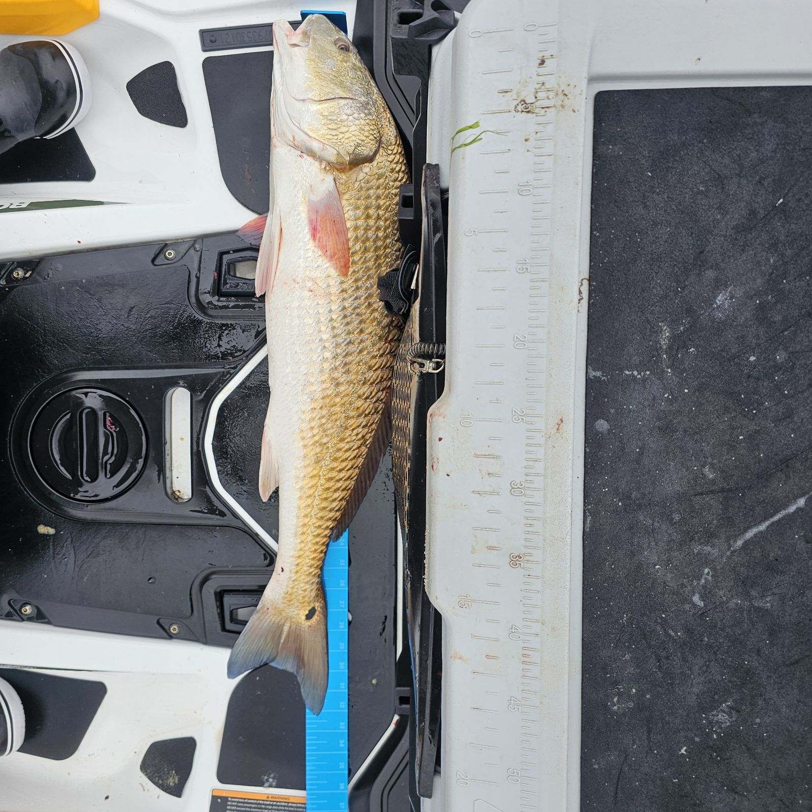 This 32.25″ red drum was caught and released by Justin Drost the other day while he was fishing from his jet ski.