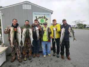 Captain Jason Mumford of Lucky Break Charters can put anglers on fish most days and today was no different at all. Even with the tough conditions, Captain Jason put his group on a pile of nice bluefish up to a “chopper” sized 33″.