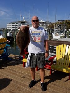 Gordy Spangler of Ocean City caught this nice 20″, 3 pound 4 oz flounder on a squid and shiner combo on board the Tortuga with Captain Drew Zerbe and mate Serge Garder.