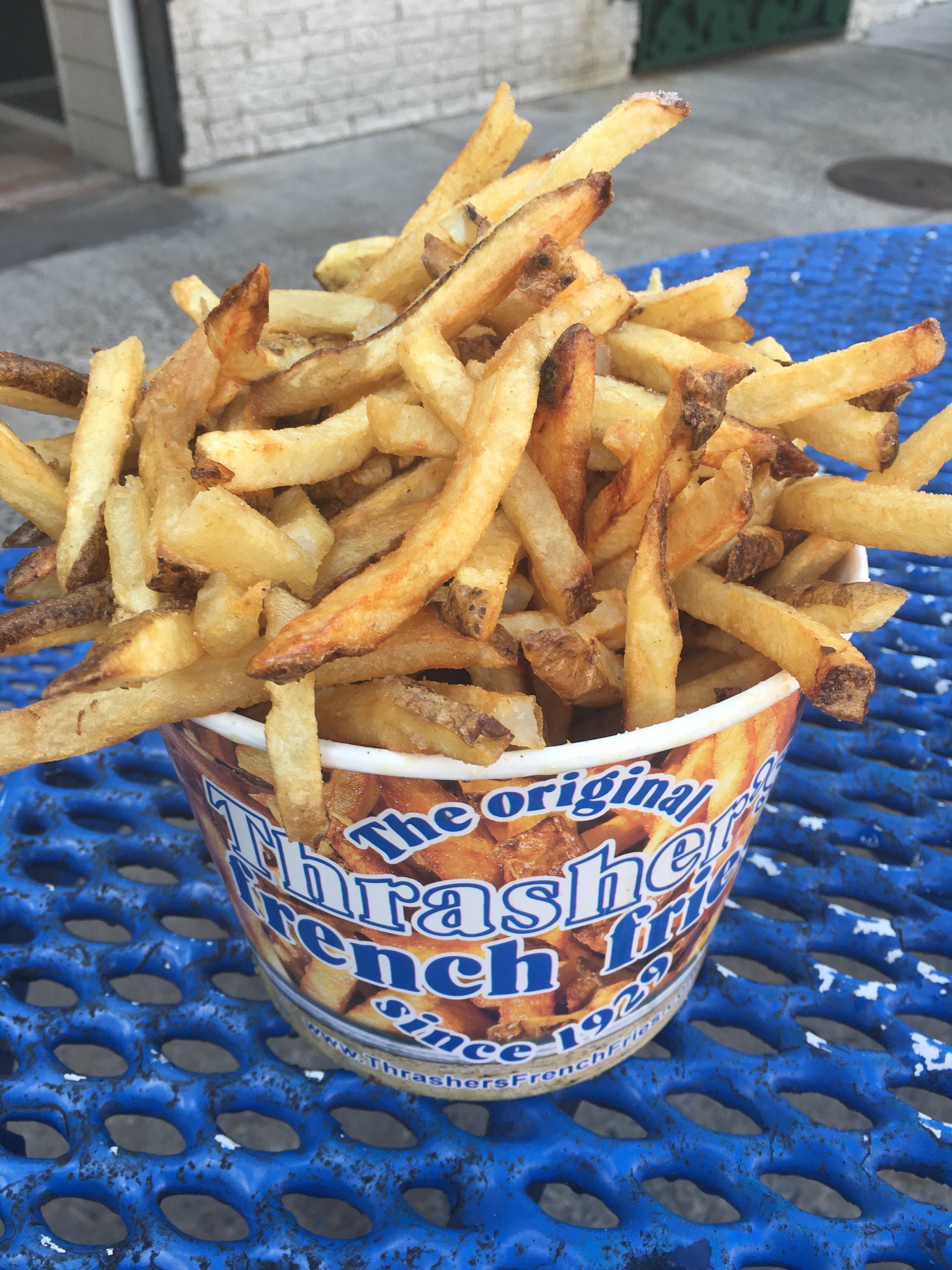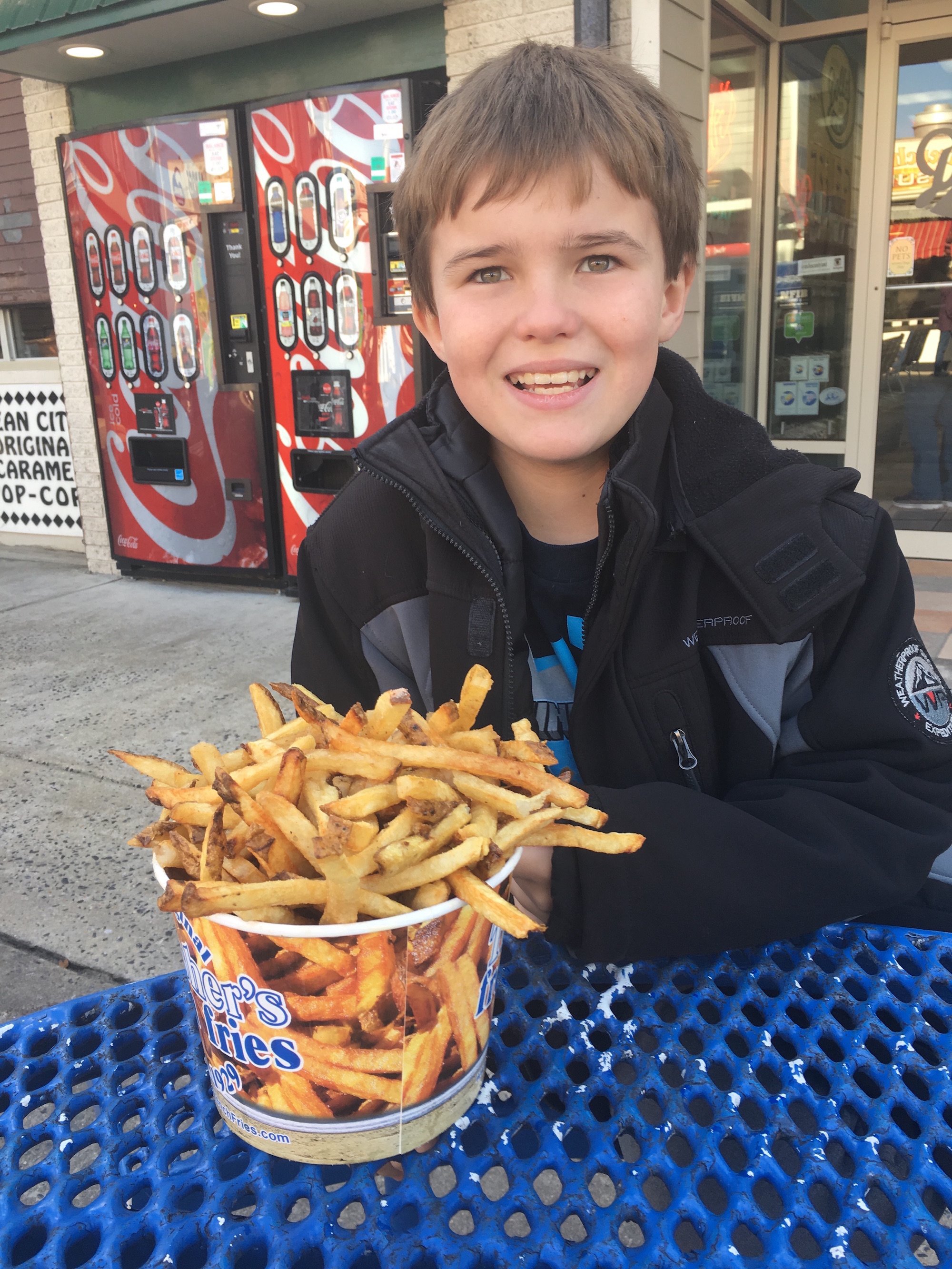 Last, but certainly not least to round out our fun family weekend was a trip to our favorite french fry place Thrasher’s French Fries at the boardwalk. We had no idea if it would be open, but we were willing to take the gamble. It was a cold, windy Saturday in December & believe it or not we actually had to wait behind a few people in line. It is always worth the wait. They are consistently hot, fresh, crispy on the outside, but soft on the inside.