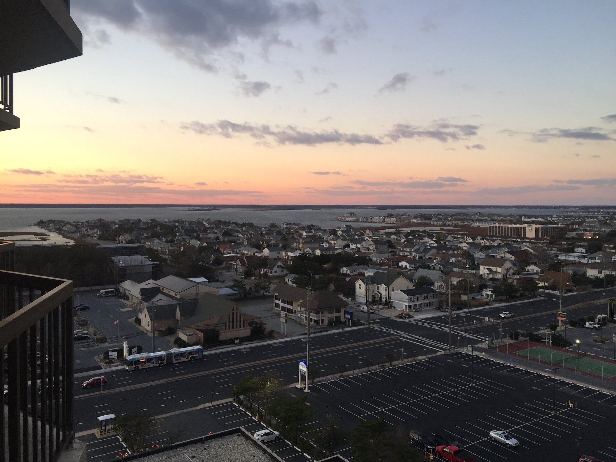 The front desk staff were friendly & we checked right into our room with a king sized bed for us & pull out couch for Ryan. The room layout that we had was interesting, because it was on the side of the hotel with two standing only balconies with sliding glass doors facing both bayside & oceanside. We checked in right around sunset & had a pretty view from both sides.