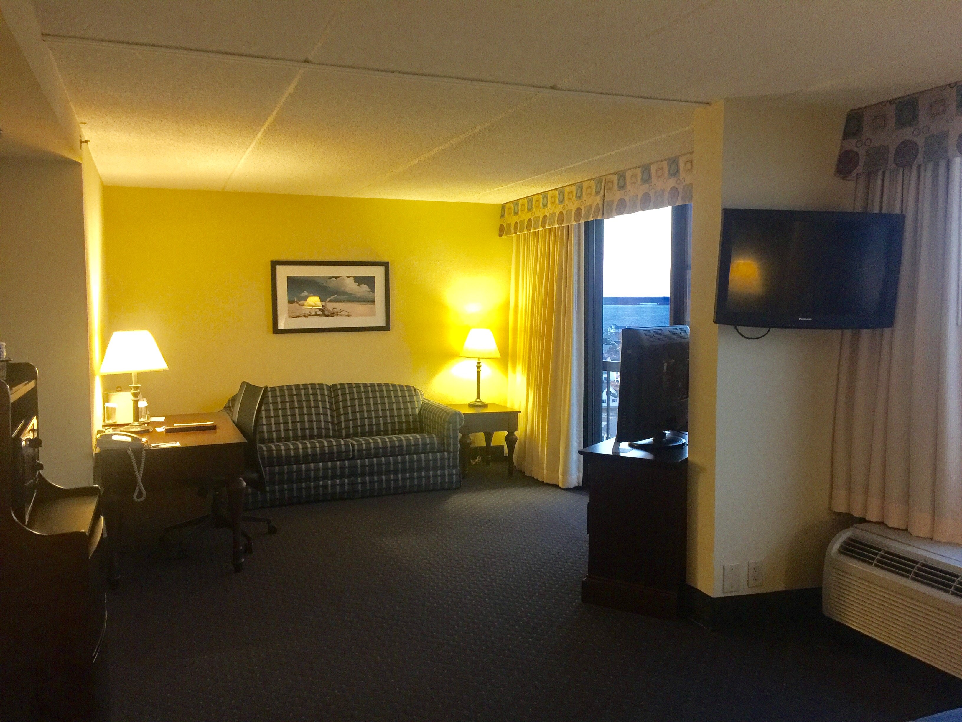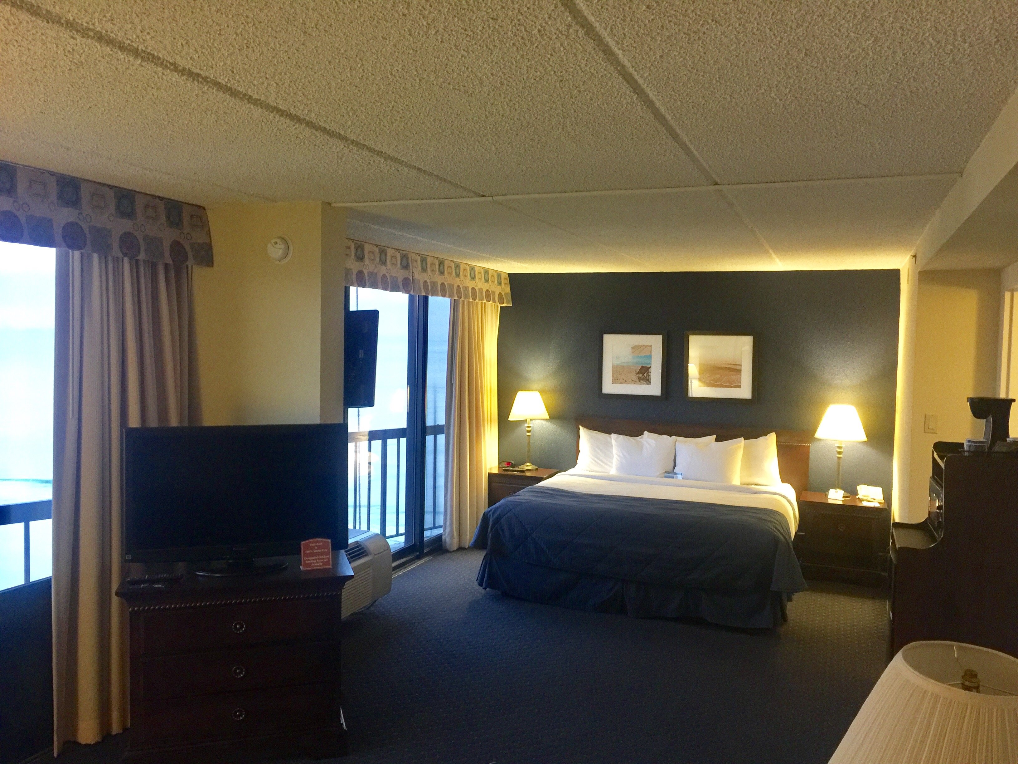 Our room was spacious & extremely clean. It almost felt like two rooms in one without a divider. One side of the room had the pullout couch, large television, desk & the bayside balcony while the other side of the room had the king bed, another television & the oceanside balcony. It was a large room plenty big enough for a family. The room also included a small refrigerator, microwave, & coffeepot. Ryan loved having his own half of the room and especially his own television.