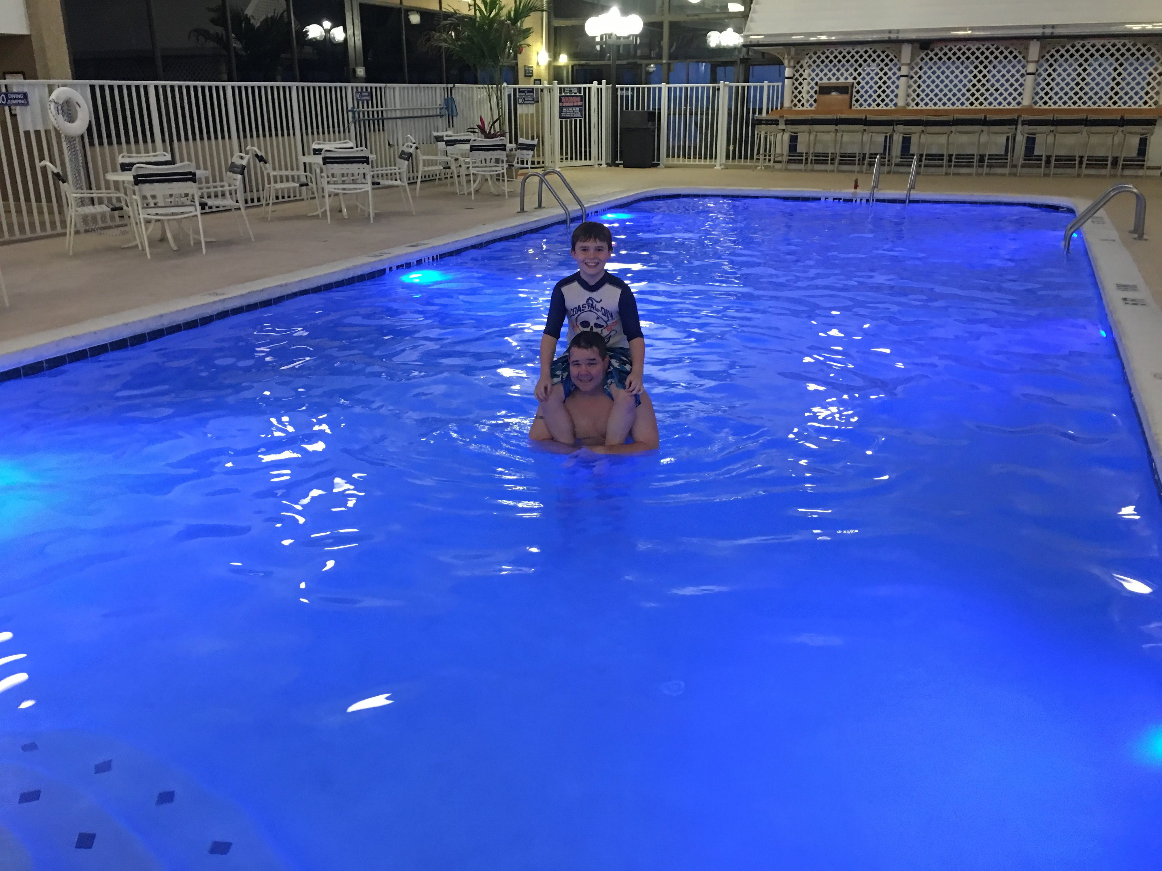 We had barely dropped our bags before our son started begging us to take him to the indoor pool. So we did. It was a nice sized, warm pool with a large pool deck perfect for your little (and big) fish. The pool had walk in steps that started at three feet going to the deeper end of five feet. The big kid & little kid certainly enjoyed themselves.