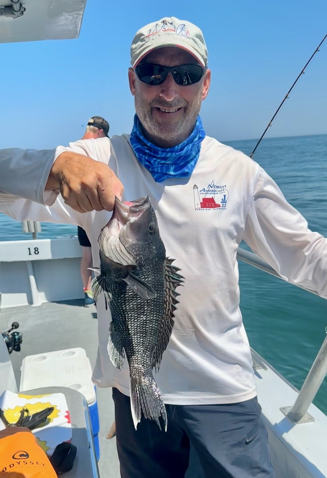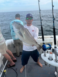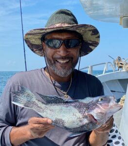 Scent aerosolized by waves breaking easily against Assateague Island in the morning calm, a light southerly breeze carried the unmistakable natural freshness of salt air across the backbay and into the wheelhouse. Although as familiar as home, it’s rarely so sweet as it was this morning. The inlet offered nothing to rebuff our leaving land behind. As we cleared the entrance buoys a gorgeous day lay ahead. After the young marine habitat reconstruction firm of Keegan, Colton & Carter launched our reef blocks by the rail, we headed on off a bit further. Clients caught near-about all sea bass today with just a few fluke and one cutlassfish. A couple fellows made it into double digits too – amazing considering how hard they had to work for every bite. Sanford sealed the deal on the pool with a sweet bull sea bass; everyone piled into the group snap.. Nice day.I’ve wondered of late what would people have said in the 1950s had anyone warned, “we’re going to turn the ‘deep blue sea’ into a pea-green ocean.”I sure don’t think anyone guessed it was happening. Even today there’s just a handful of marine ecologists coming to the realization of a greening sea. (Scientists rarely believe fishermen.) About a decade ago I was at a conference where a presentation on anoxia/hypoxia (absence of/low oxygen) in Chesapeake waters was given by one of the finest marine ecologists you could ever hope to meet. At its conclusion a line was drawn across the mouth of the Bay delineating its over-nutrified, algae laden waters when this quote was given: “..and the ocean just absorbs it.” I stood up right then and gave the room an earful about Maryland’s marlin fishery and its steady march offshore across many decades as the Mid-Atlantic ocean grew greener & greener. I had a bluewater skipper, a marlin fishermen, describe fishing just 4 to 5 miles out on his daily trips in the 1930s, (have even heard 2 miles out described in the 1920s!) to 15 & 20 miles through the 1950s into the 1970s. Nowadays, of course, marlin boats will run to the canyons & much further. At 55 miles offshore, Poor Man’s Canyon is so named because you burn less fuel getting there–it’s the closest one.. Several captains this week told me green water extended to 60 miles. Pulses of green water going beyond 100 fathoms like that have not been unusual this last decade. Only recently has an article come out in “Nature” (a cutting edge science source if ever there was) about ocean greening. Those authors write about far more ocean than I’m referring to though, & lay blame on warming. What I’ve documented isn’t that. It’s the collapse of oysters leading to unfiltered and therefore overnutrified outflows of our two largest estuaries turning the Mid-Atlantic green over the course of 70+ years. I believe the absence of a keystone species, oysters, & not climate change, is the cause. I think this greening would have occurred given a mini ice age. I do hope we repair marine water quality before grouper take a liking to our reefs though. Why here? Why not Palm Beach and Jupiter inlet along Florida’s east coast too? How come those fellows can target sailfish where great grandad did but we have to run further & further with each generation?A presentation given by Dr. Jon Hare some fifteen years ago (now boss of bosses at NMFS Science) showed the Gulf Stream a meter higher on its north side as it careened off Cape Hatteras. The Labrador current, so powerful off Cape Cod, wanders south more slowly to its terminus off Chesapeake Bay. Together I believe they form a dam that traps our nutrient rich estuarine outflows allowing more & more algae to flourish; a dam that all but prevents marine flushing making our Mid-Atlantic waters more green than anywhere else along our coast. Last few years we’ve had good fortune with east winds pushing cleaner green water inshore in summer – even ‘blended water’ on occasion with a bit of blue in it. In my youth many clients and skippers told me of dolphin fishing in blue water at Great Gull buoy (5 miles out) into the 1970s. Twenty miles out this year you can only see down a couple feet at best. Last few years mahi came inshore in better water. They were even caught ten miles out. I thought our newly recovered oyster bars & reefs, the start of a recovery still thought impossible by some, were having an impact on water quality – and they must be. But for now? Back to the green grind with no hope of nearshore mahi at the moment. Could change in a day though.. Lot of water moves around off there. Cheers, Monty