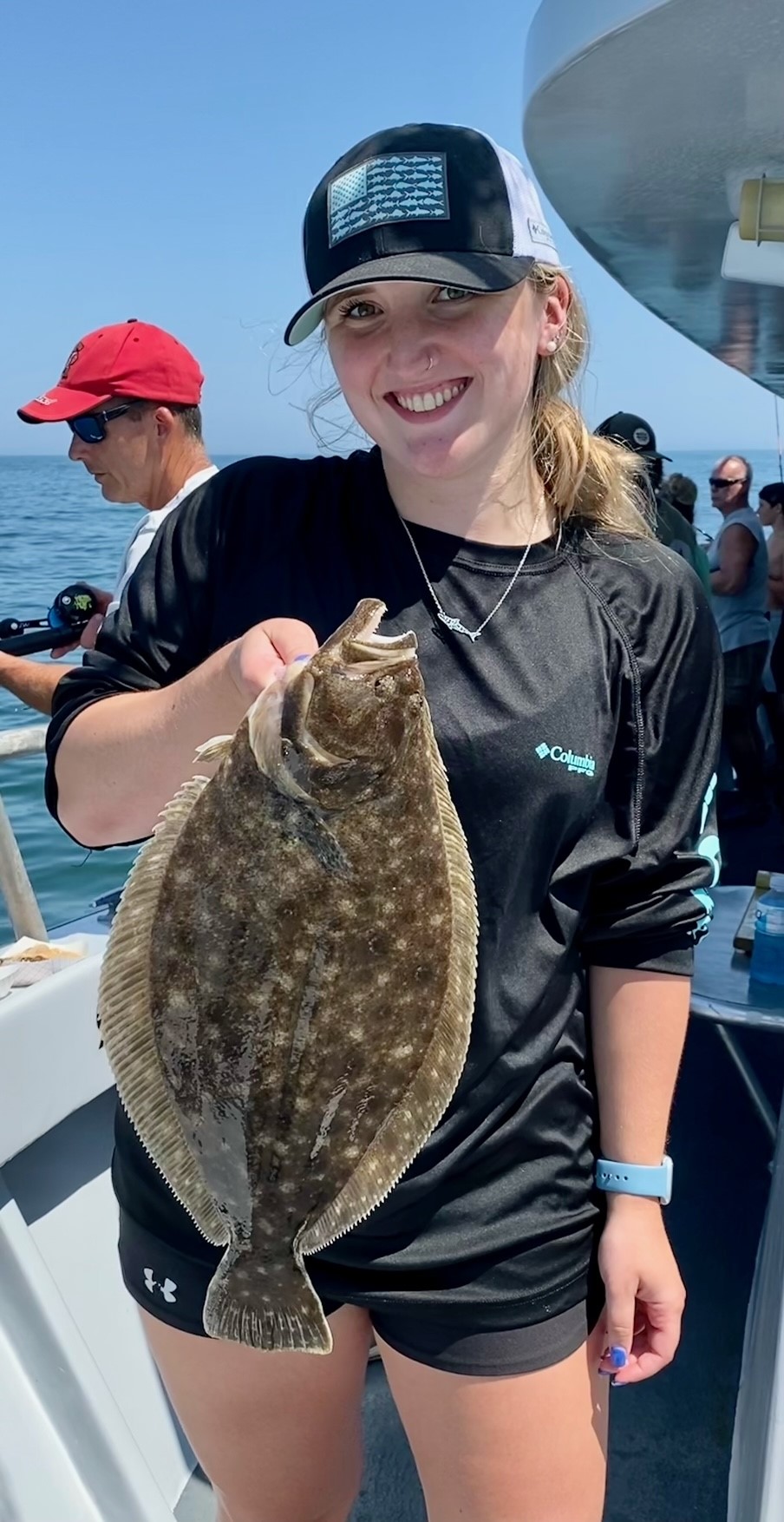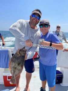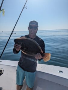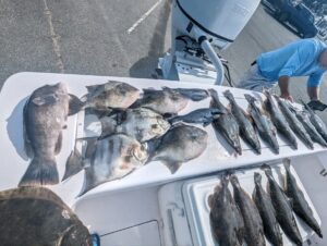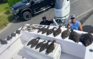 There was some pretty great flounder fishing over ocean structure today in flat calm seas for some of the fleet. Blake Gunther, Derek Yobst and crew had an awesome day with some very big fish up to 27″ and 8.3 pounds. The guys also had some spadefish, a tautog and some nice triggerfish today.