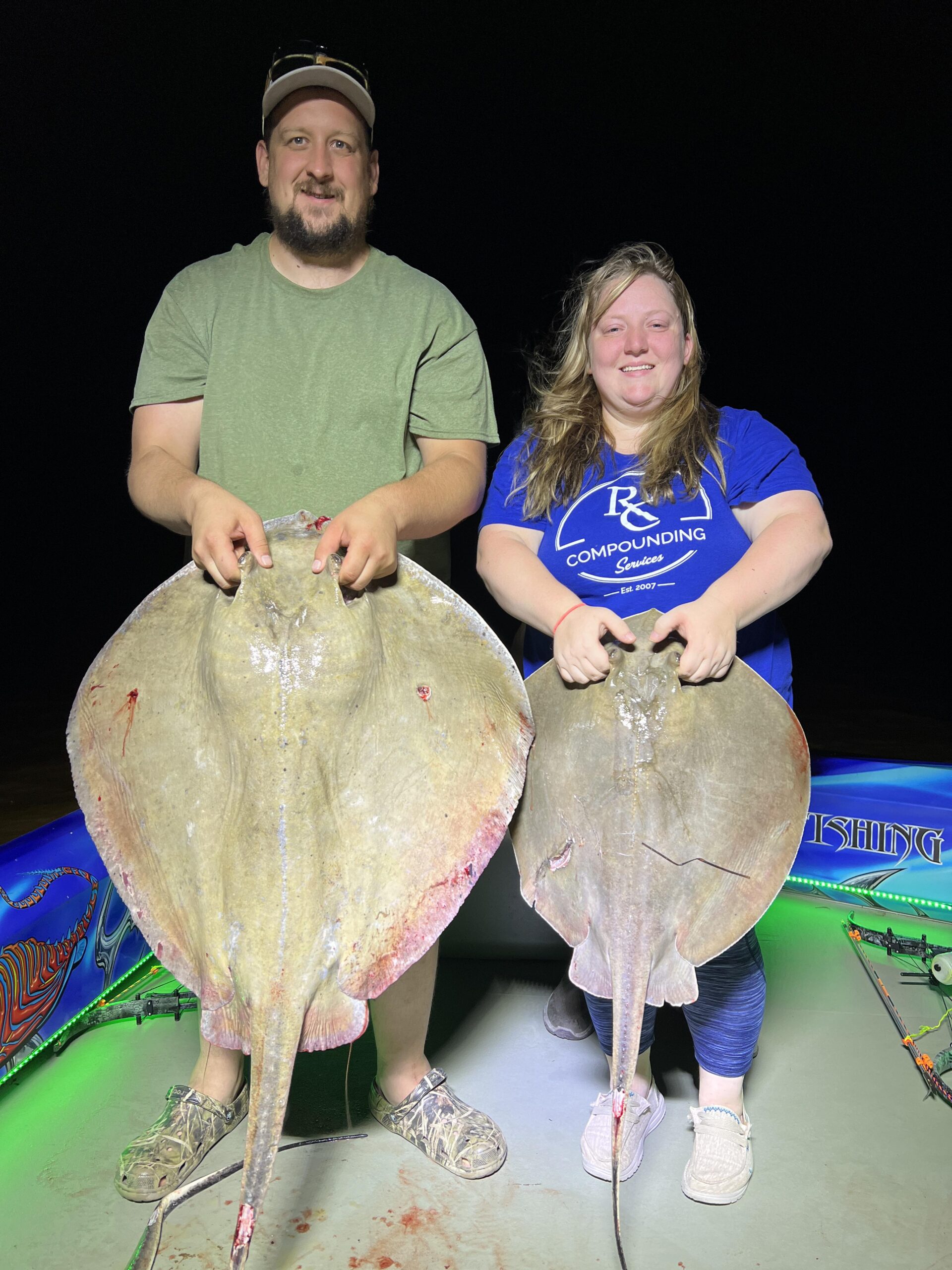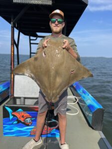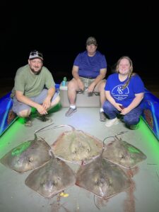 Captain Marc Spagnola of Dusk to Dawn Bowfishing hasn’t slept this month, but his customers don’t care because he’s putting them on cow nosed and southern rays both day and night.