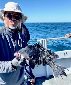 Captain Monty Hawkins of the Morning Star saw some big sea bass over his rail today.